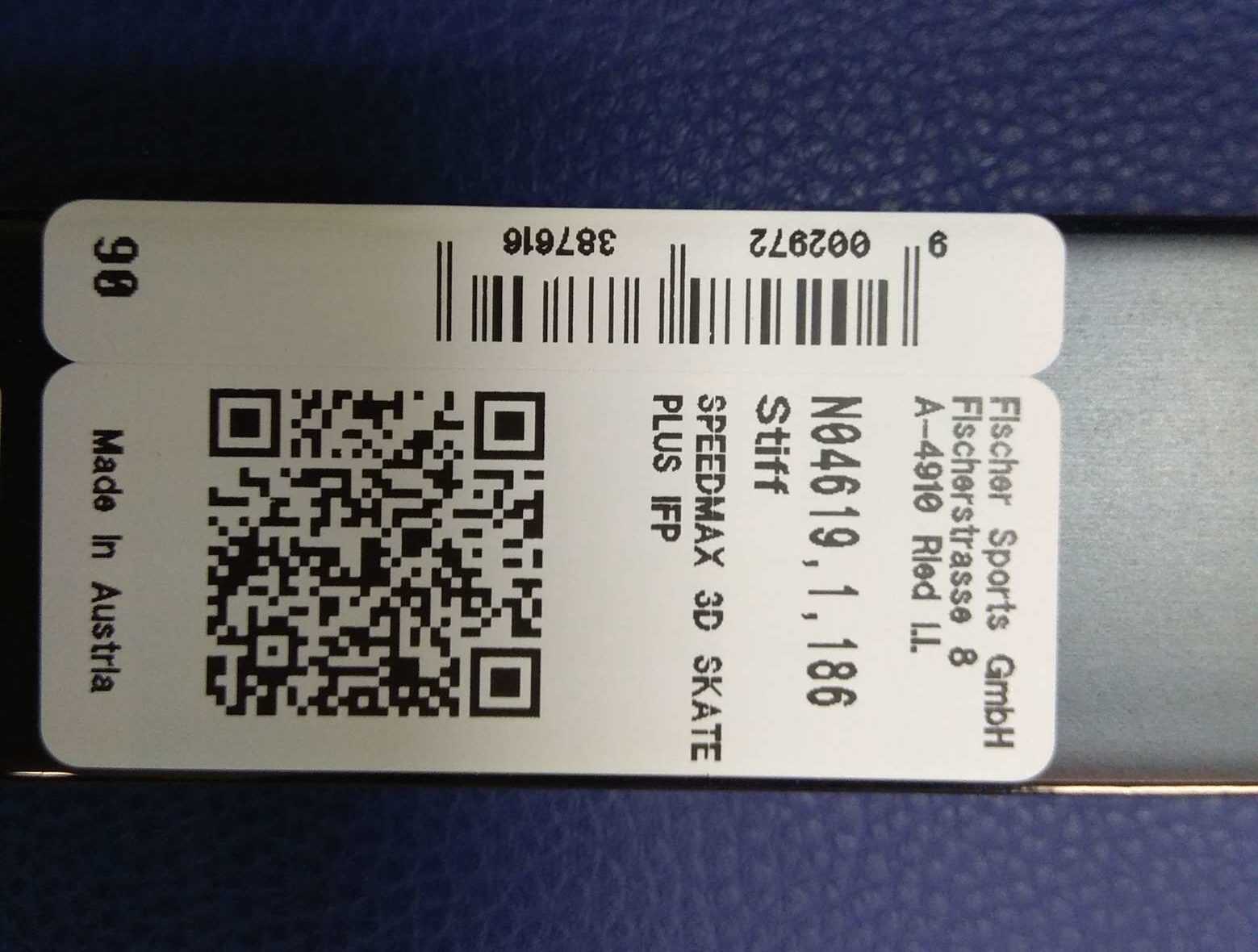 На лыжах сезона с 2019 года идет наклейка такого вида. На ней уже нанесен QR код для считывания всей информации о лыжах: номер штрих-кода, полный номер лыж с ростовкой, HR и FA.