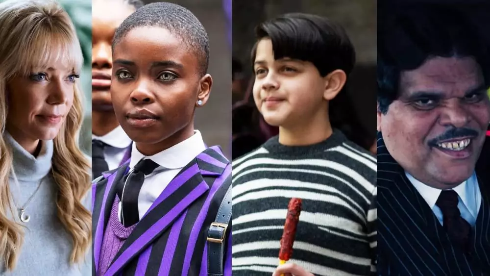 Компанию Уэнсдэй составляет преданная Вещь — ожившая отрубленная рука. А вот Мортиша, Гомес и его брат Фестер появляются лишь в нескольких эпизодах — ненадолго заглядывают, чтобы доказать нерушимость родственных связей и помочь дочери разгадать одну из многочисленных загадок. Появления других членов семейства ждать не стоит. Скажем, бабушки или покрытого волосами кузена Итта в первом сезоне нет.