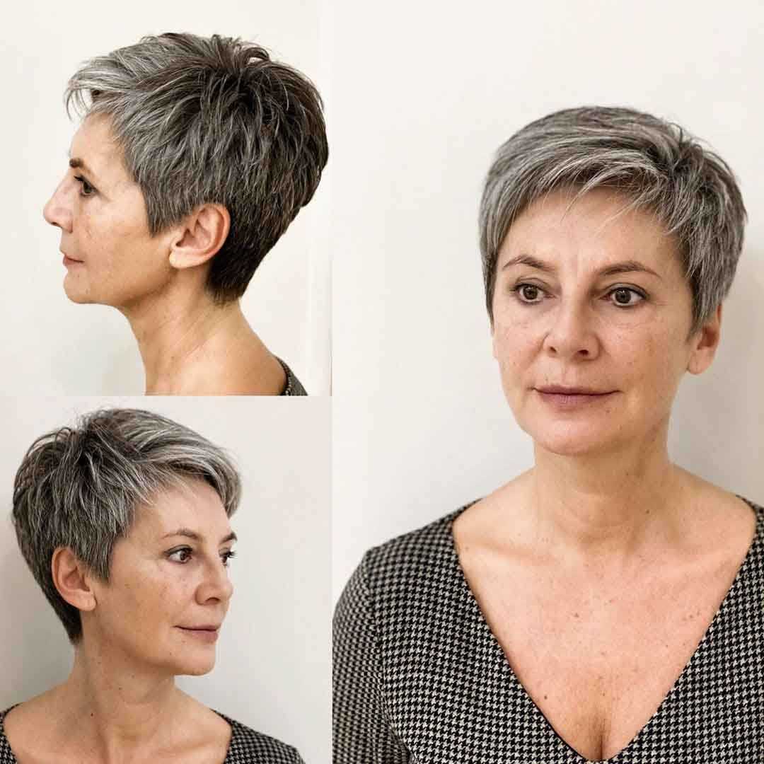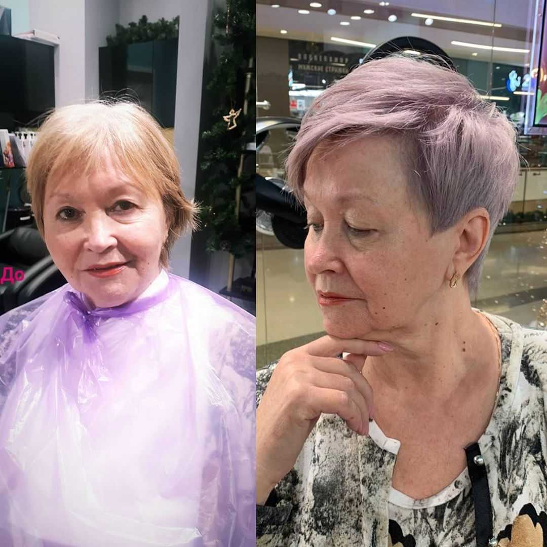 Женщина в любом возрасте должна оставаться стильной и элегантной. Короткие стрижки могут в этом помочь, но независимо от вида стрижки шевелюра должна быть ухоженной. Если у вас окрашенные волосы, надо периодически подкрашивать отросшие корни, если натуральные, то рекомендуется использовать специальные шампуни, чтобы нейтрализовать желтые блики на седине.