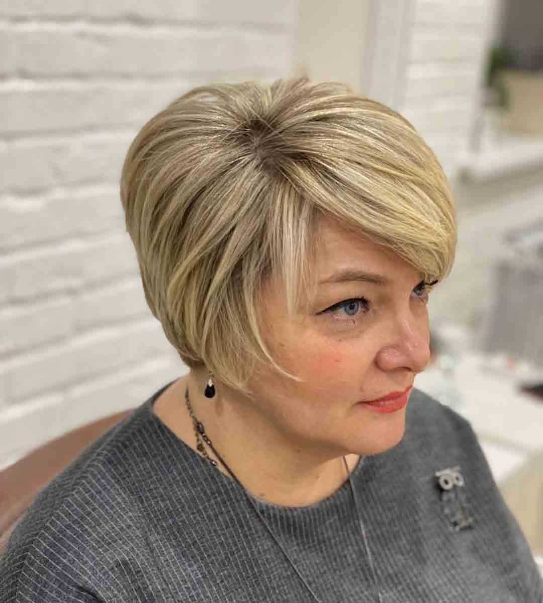 Стрижки для круглого лица для женщин после 60+, не требующие укладки