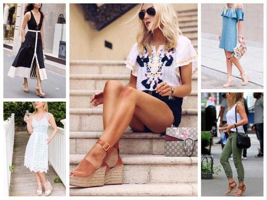 Стильной и удобной признана летняя обувь на танкетке. Ее высота бывает разной. Танкетка до 5 см в высоту будет идеально смотреться на длинноногих красавицах. А девушкам невысокого роста стоит подобрать модель на танкетке выше 5 см. Они сочетаются с мини-юбками, платьями и шортами.