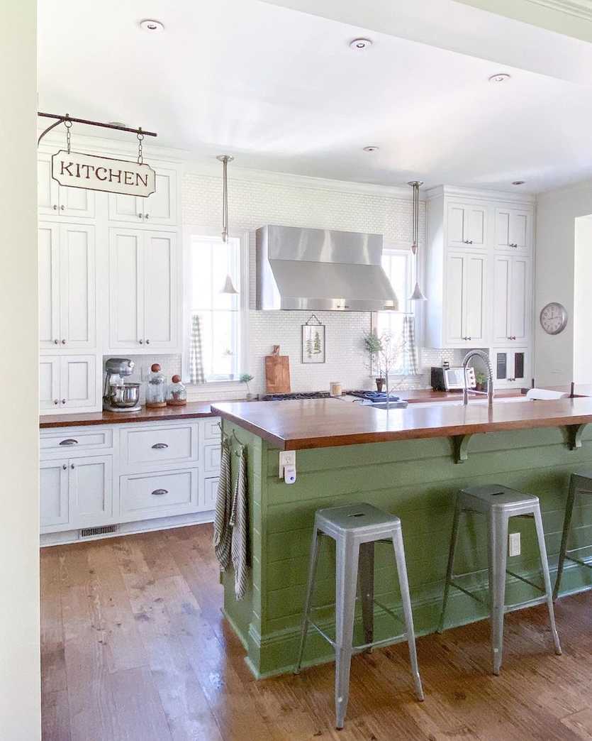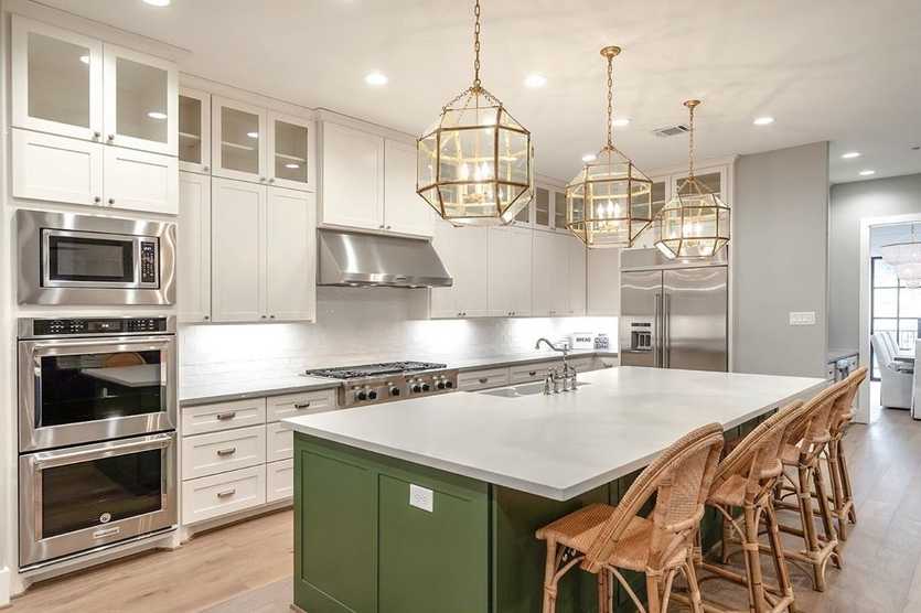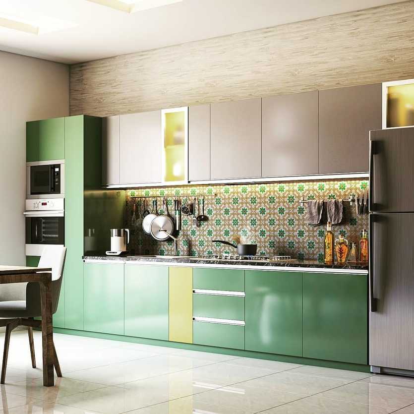 Например, для современной классики подойдет гарнитур цвета лайм приглушенных тонов в матовой фактуре. Сочетайте его с кремовыми, бежевыми и другими светлыми тонами. Например, лаймовые фасады и пудровые обои. Такая комбинация смотрится очень нежно и аккуратно, однако при этом освежает интерьер, добавляя неожиданную нотку.