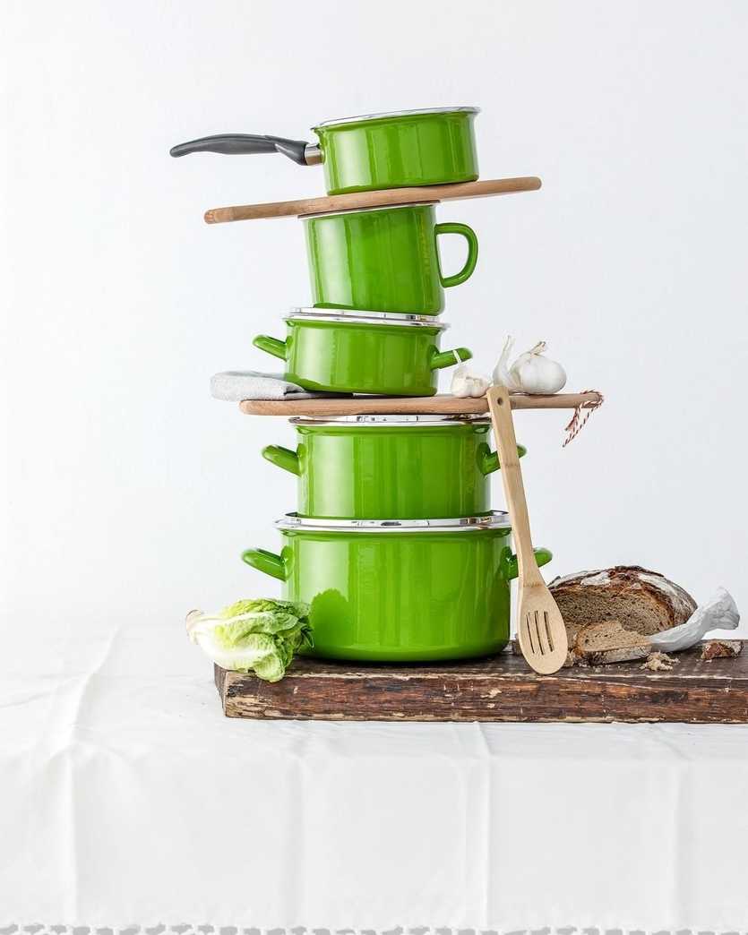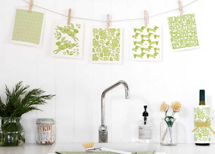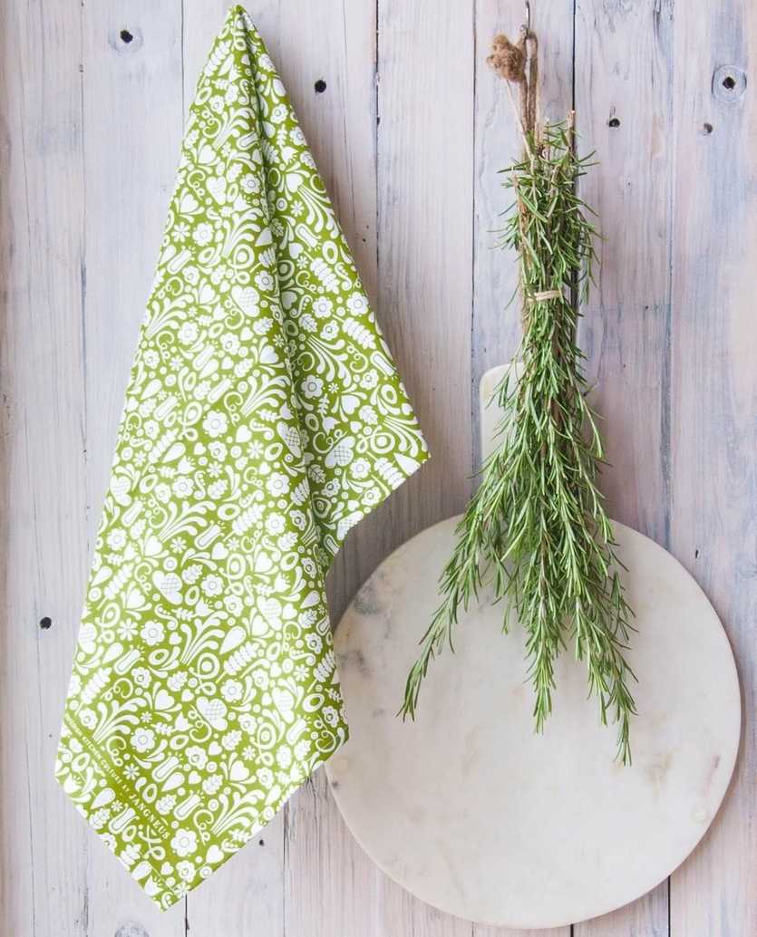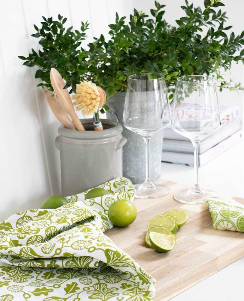 Наименее рискованный вариант — яркий кухонный текстиль: полотенца, прихватки, скатерти, коврики и дорожки. Внести таким образом в интерьер кухни лайм — просто и «безопасно» (взгляните на фото ниже).