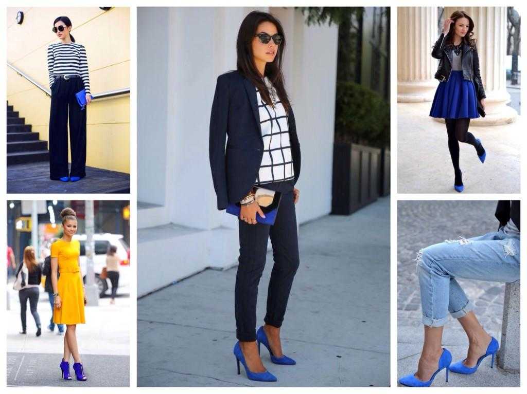 Отдельного упоминания заслуживает обувь цвета кобальт или электрик. Она создаст яркий акцент в образе, хорошо ее дополнит синий клатч.