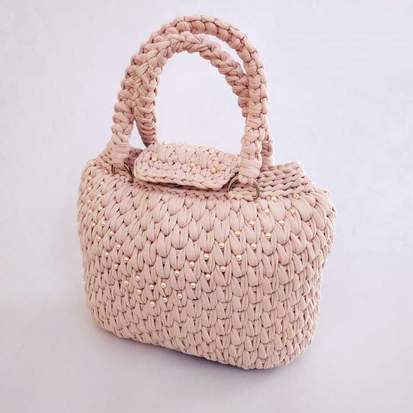 Если изделие выходит массивным, много весит, стоит выбирать крепкую фурнитуру. Ручки можно вывязать сразу, сделав сумку цельной. Но также их пришивают, приклеивают, прикрепляют кольцами, что особенно подходит для негабаритных моделей.