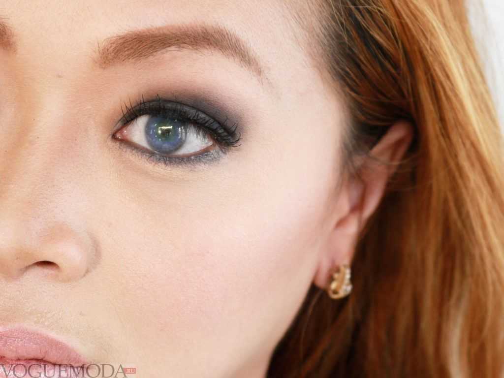 Использование черной палитры на голубоглазых русоволосых барышнях некоторым покажется слишком контрастным и мрачным решением. Тем не менее, такой макияж имеет место в жизни, если хочется выглядеть эпатажно и неординарно. Тем более, что одежда в стиле рок и гранж просто обязывает наличие ярких черных штрихов на милых личиках. Сверх контрастный черный макияж для русоволосых голубоглазок — беспроигрышный козырь на тематических вечеринках и рок-концертах.
