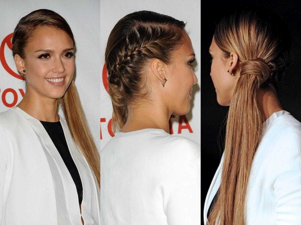 Асимметричный заплетенный хвостик — отличное решение для молодежи, стильных модниц. Заплетается на густых, гладких, а также кучерявых пучках. Этот вариант хорошо смотрится на очень длинных волосах, заплетенных в технике канат. Подчеркивает легкий силуэт. Хвостик с косичкой может быть: