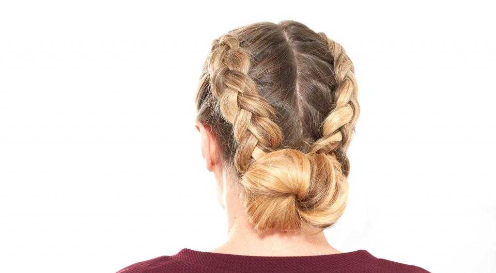 Две косички могут быть элементом прически с низким пучком. Эта укладка смотрится очень элегантно и подходит практически всем представительницам прекрасного пола независимо от возраста. Ее можно носить в детский сад, школу, офис, прогуливаться в таком виде по парку на свидании с любимым парнем или отправиться на торжественное мероприятие. Кроме того, такая прическа является очень практичной, поскольку волосы аккуратно собраны, и укладка сохраняет форму на протяжении всего дня. Для того чтобы ее сделать, необходимо разделить волосы на две части вертикальным пробором, затем сплести две косички выбранным вами способом и собрать их вместе, зафиксировав резинкой. Затем обернуть совмещенные косы вокруг основания хвоста и закрепить кончики невидимкой. Можно также укрепить пучок шпильками для дополнительной прочности.