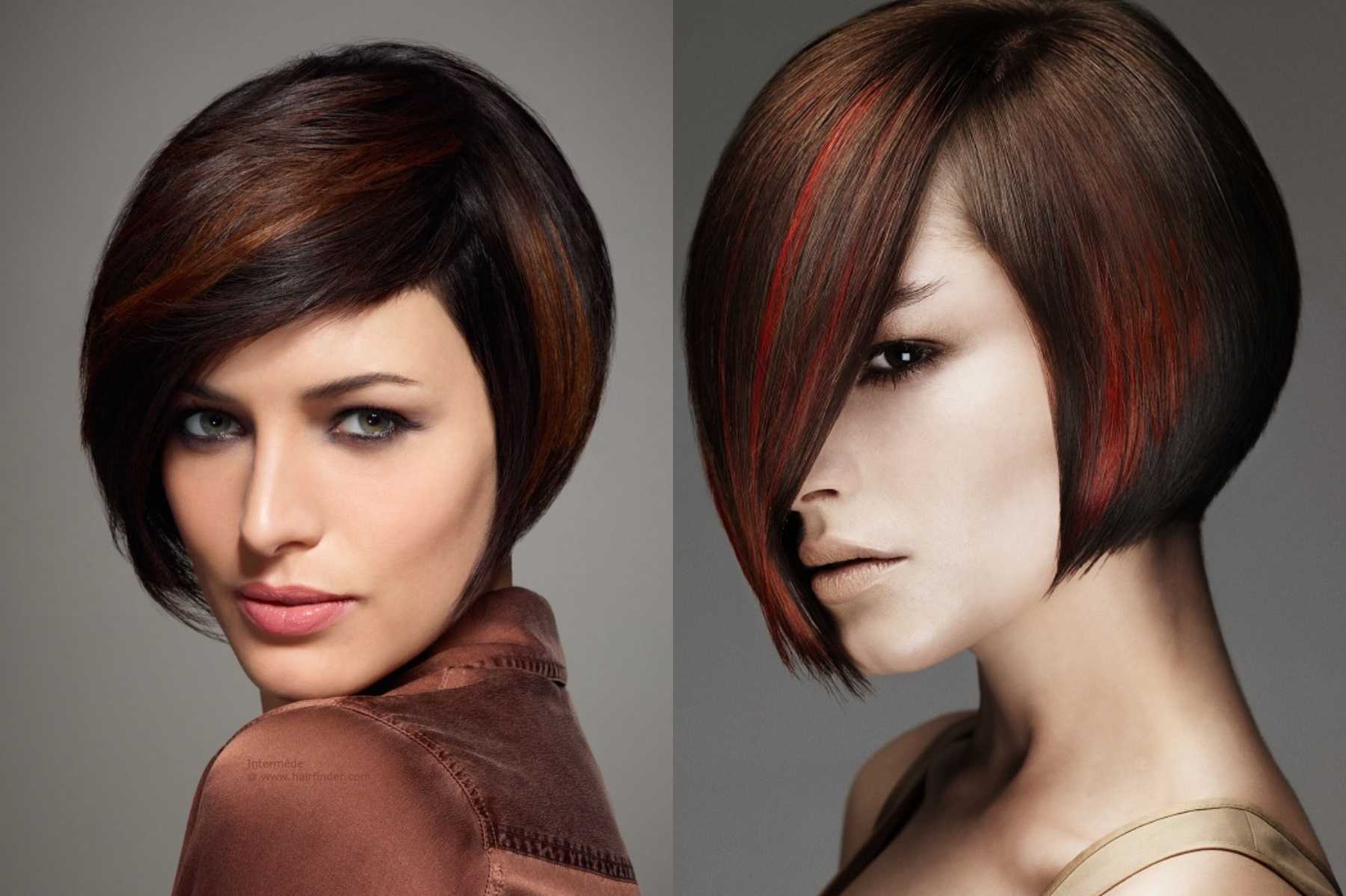 Создать овальность лица смогут косые челки. Только грамотный мастер сделает вам правильную косую челку с прядями сбоку. Такой вариант челки подойдет к асимметричному и классическому виду боба.