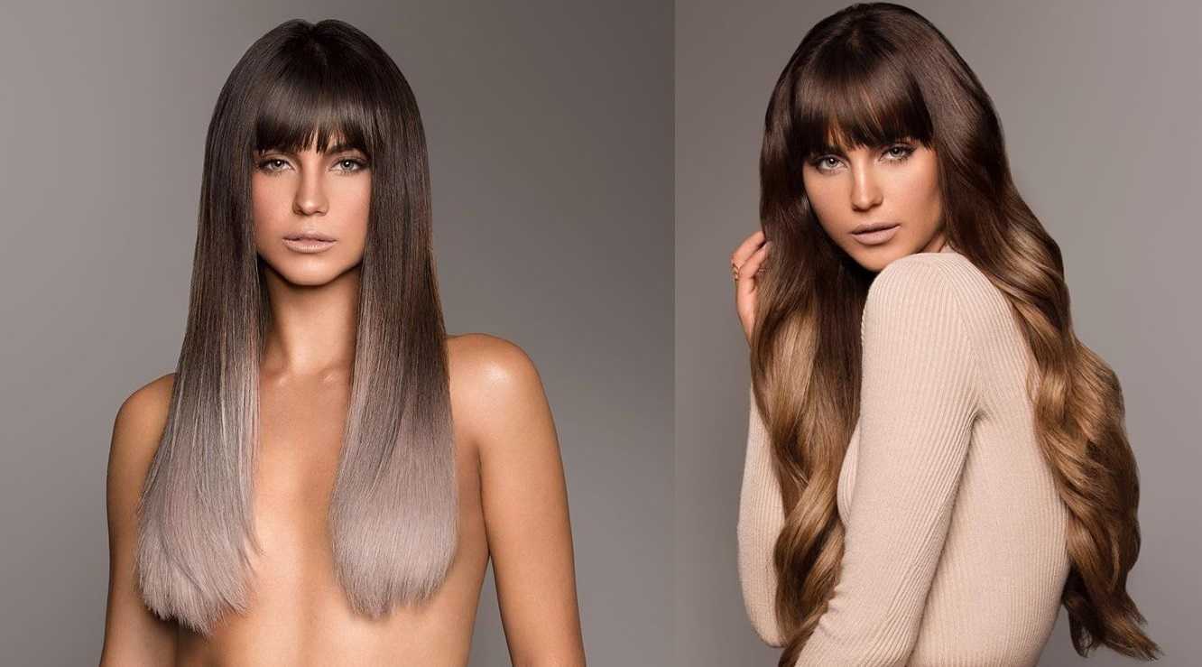 Техника окрашивания подходит обладательницам прямой и длинной челки. Мастер должен так растянуть цвет, чтобы он затрагивал все волосы, используя плавные переходы