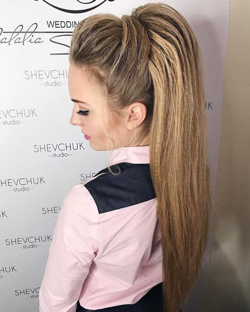 - Такие действия выполнять до тех пор, пока все шпильки не будут равномерно распределены по двум сторонам прически. А вот как сделать прическу высокий хвост, подробно описано в данной статье.