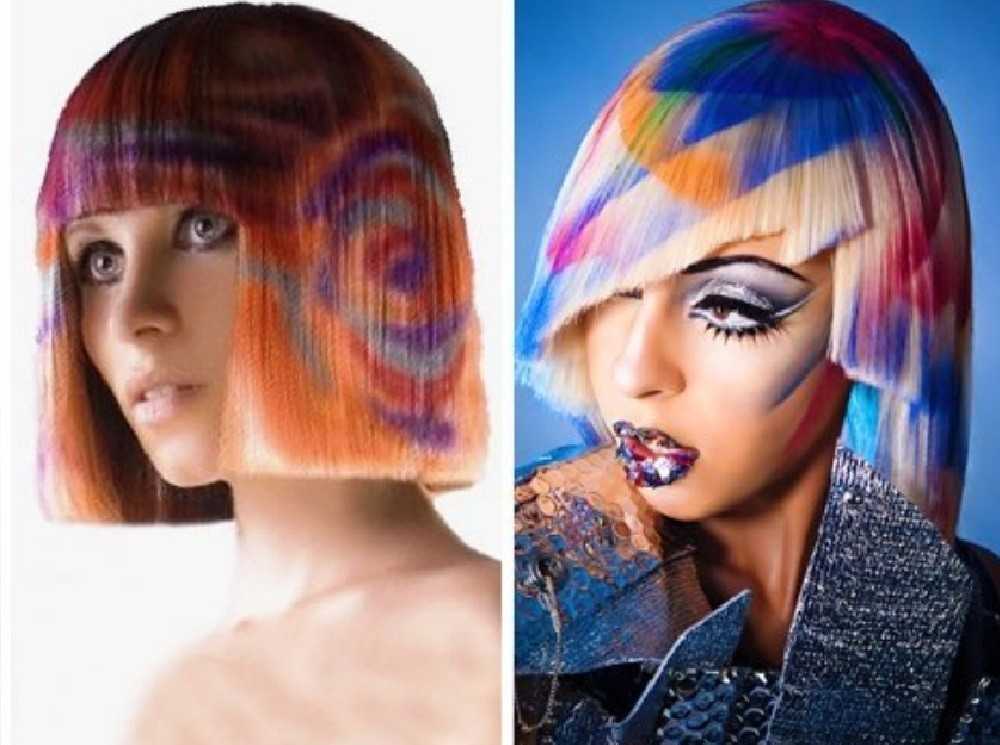 Для таких окрашиваний применяются временные быстро смывающиеся красители, так как при отрастании волос рисунок теряет вид, пропорции и привлекательность.