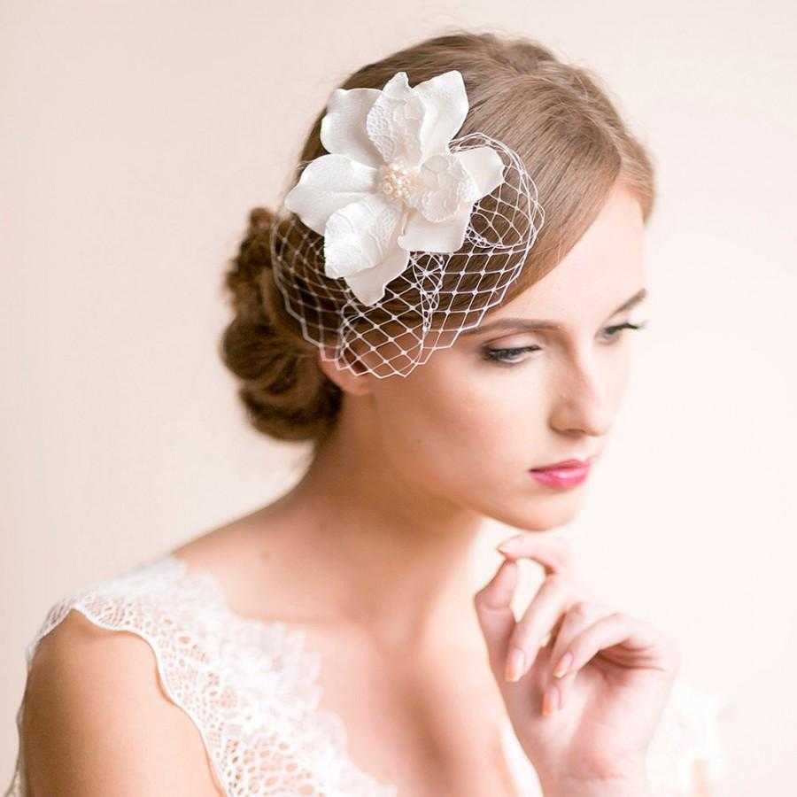 Свадебные прически с аксессуарами для волос средней длины, фото
