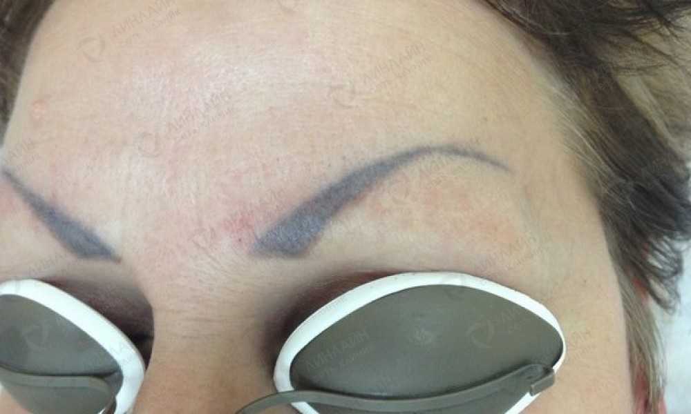 - защитную повязку на глазах снимают через 2 часа после окончания сеанса удаления неправильного татуажа. Брови промывают теплой водой и промакивают салфеткой;
