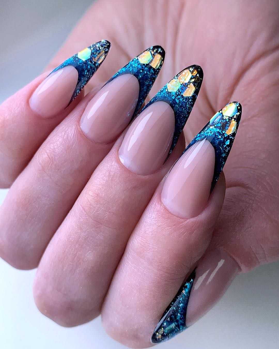 Ноготки с острым концом — идеальная база для разработки аквариумного маникюра. На такой форме будет выгодно смотреться любая интерпретация этого вида дизайна, если она выполнена технически правильно.