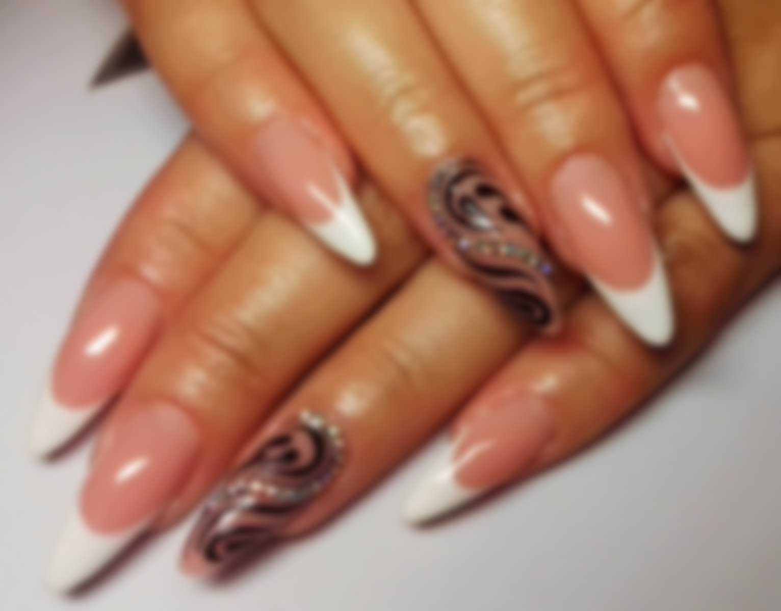 Выполняя французский маникюр на острые ногти стилет или пики, помните, что такой дизайн прекрасно подойдет для вечерних и торжественных мероприятий. Также роскошен будет черный френч. Забудьте про стереотипы, не бойтесь пробовать что-то новое и необычное.