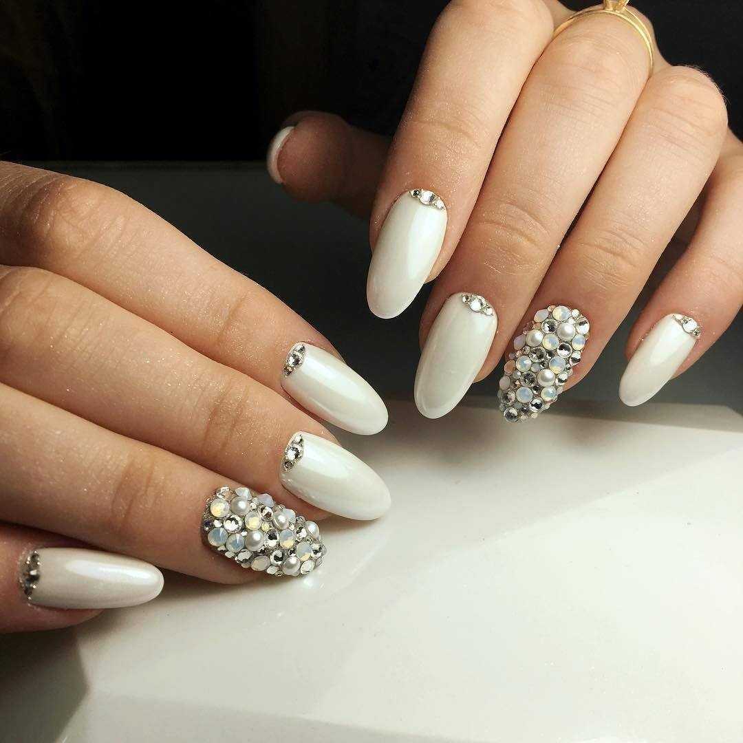 Для создания белого, изысканного и элегантного нейл-арт-дизайна, модница должна использовать только красивый и индивидуально подобранный декор, он может быть в виде со стразами и бульонками, камушками и горошинками, в него могут втираться разные блестки и так далее.