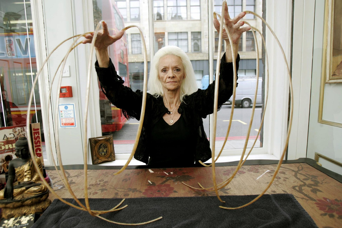 Женщина с самыми длинными ногтями в мире начала отращивать длину в 1979 году. Она решила отрастить их как испытание для себя, чтобы посмотреть, как долго сможет продержаться, не срезая их. Ее тщательно ухоженные ногти достигли общей длины в 8 метров 50 сантиметров. В интервью она упоминала как странно когда они, в конце концов, становятся частью твоей личности.