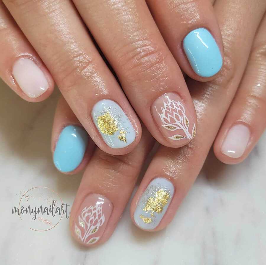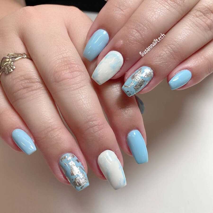 Использование разных цветов фольги — один из главных трендов этого года в нейл-арте. Материалы применяются золотого, серебряного, разноцветного, синего, голубого, бордового, красного, розового, светлого, белого, серого, черного и других оттенков.