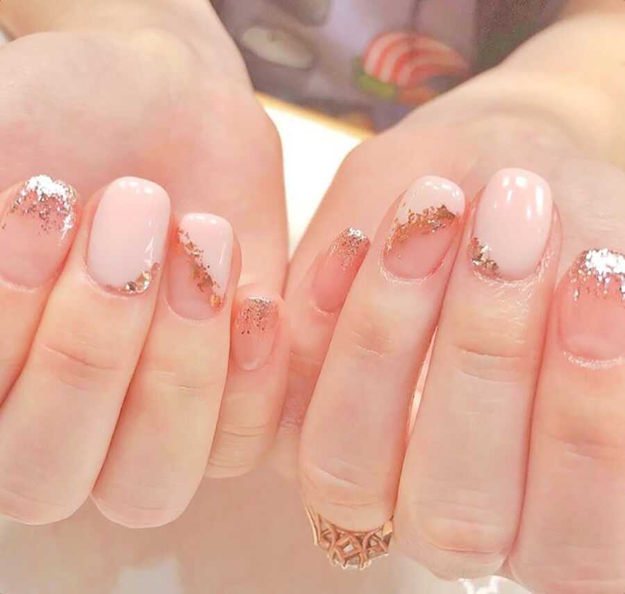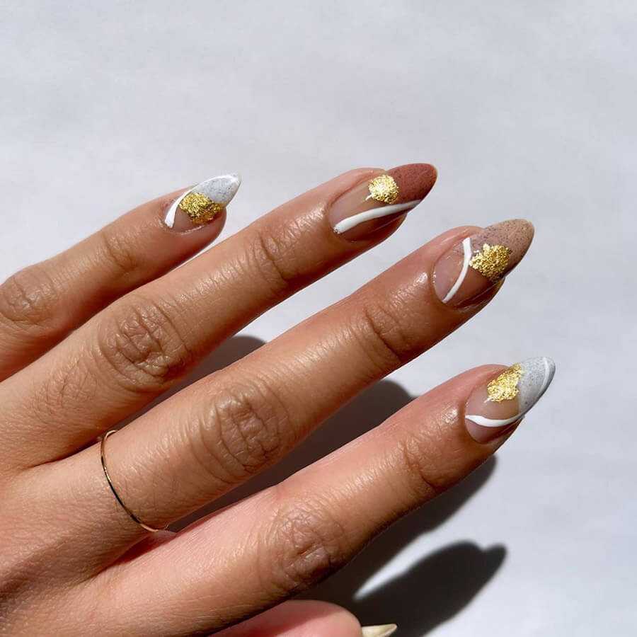 Но, помимо френча, прекрасно подходят лунки, украшенные по-новому фольгой, например, в форме треугольника.