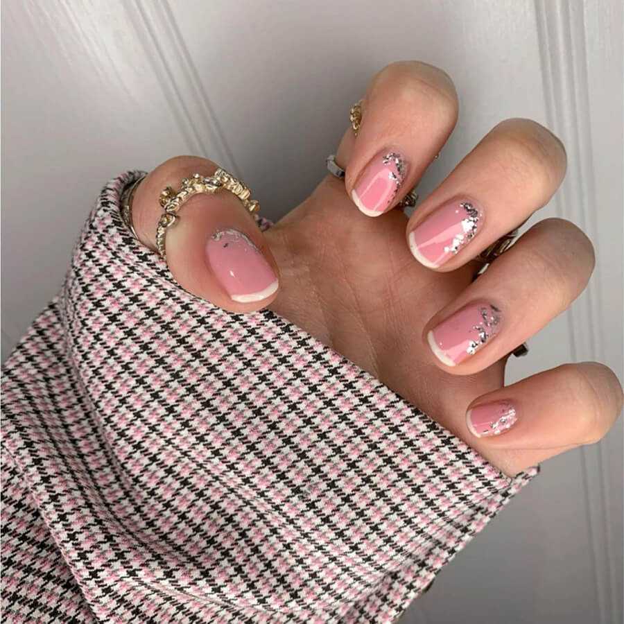 Благодаря нейтральному фону, модный френч с фольгой дает возможность бесконечно играть с цветами и сочетаниями оттенков блестящего декора. Техника «битое стекло», разнообразные переливы и разводы металлика прекрасно впишутся в этот классический вариант обработки ногтей. Они будут смотреться оригинально и эффектно, нежно и привлекательно.