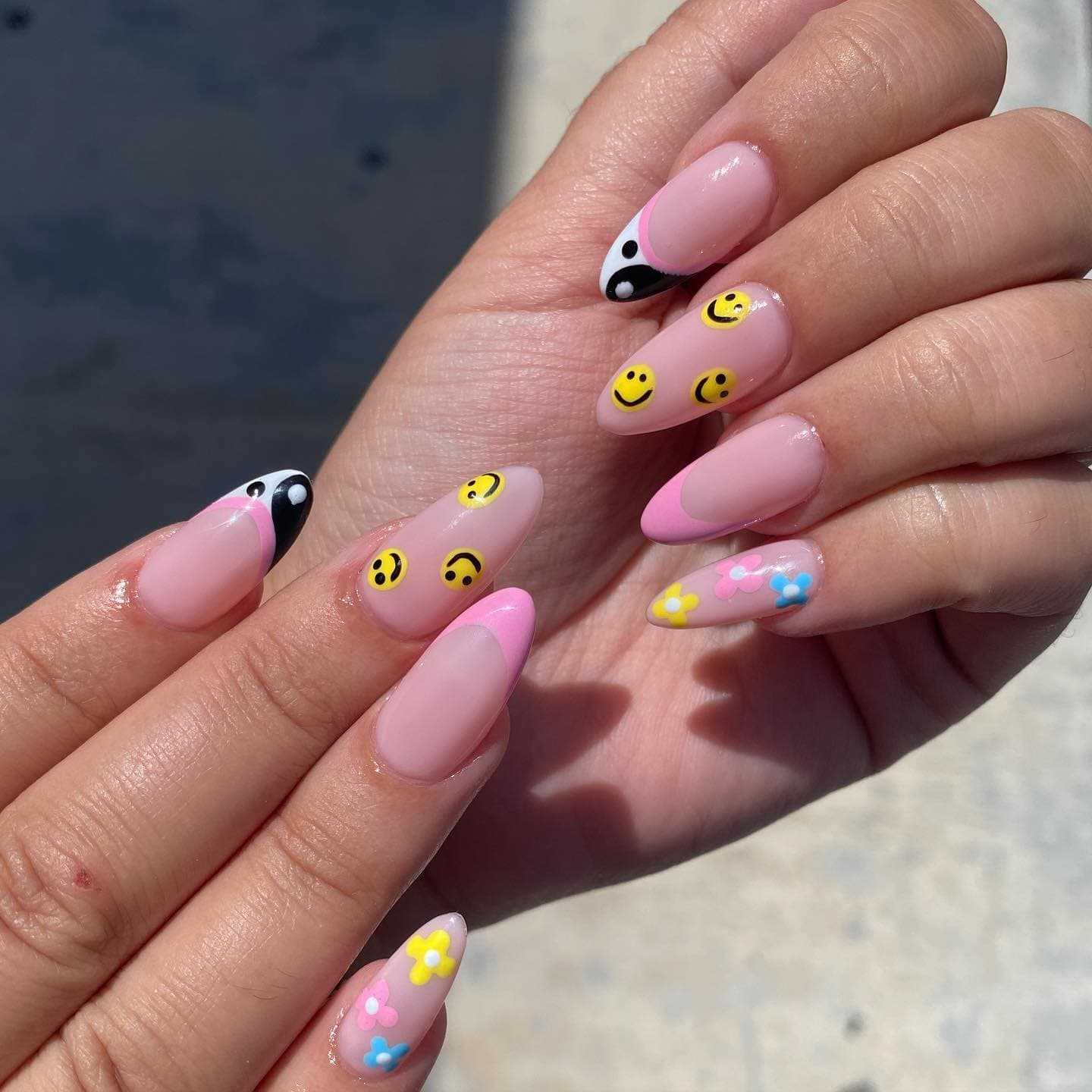 А напоследок мы оставили самый оригинальный маникюр френч с дизайном, который вас точно удивит. Конечно же, все это подойдет не на каждый день, но для громких событий и модных вечеринок – самое оно. Итак, смотрим лучший маникюр френч с декором 2023 года.