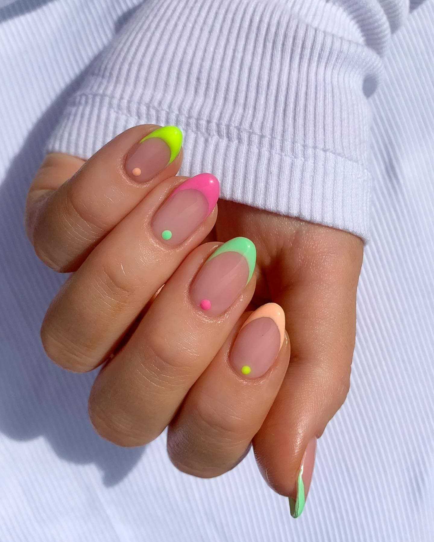 Но все же есть несколько оговорок. Во-первых, с таким ярким и выразительным маникюром девушка должна чувствовать себя комфортно и гармонично. Это сильные цвета, на которые не решатся робкие и застенчивые натуры. Если цвета противоречат характеру, маникюр быстро надоест и его захочется сменить. Во-вторых, ограничения по выбору этих оттенков может накладывать род деятельности девушки. Такой броский маникюр не смогут позволить себе офисные и банковские работники или учителя.