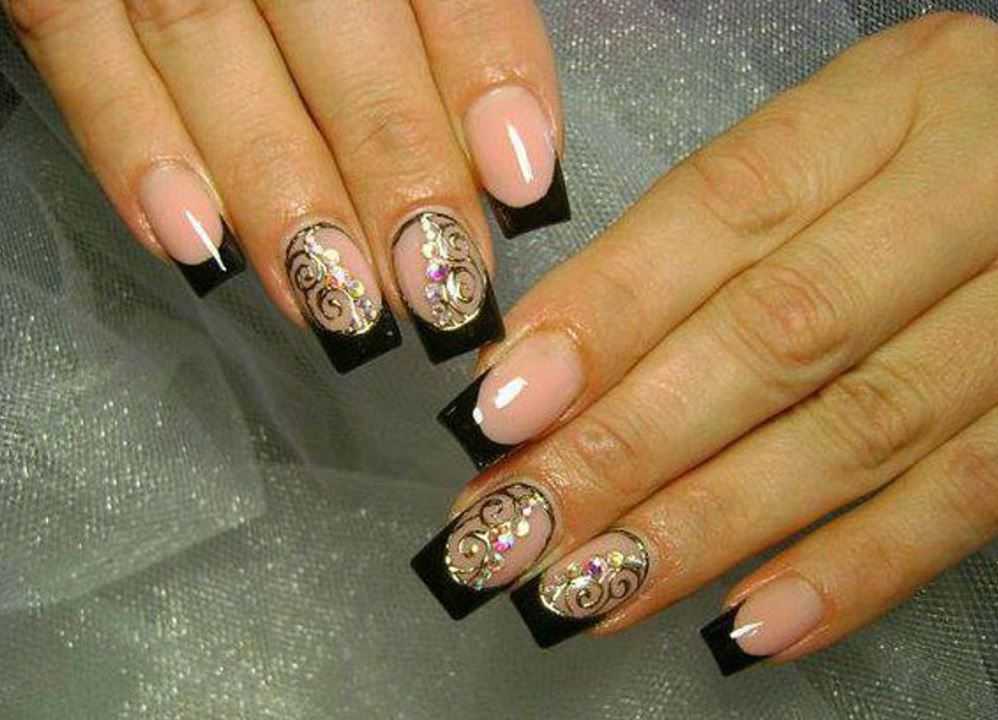 Самый шикарный и неотразимый вариант – это маникюр со стразами, но он требует мастерства в выполнении. Знайте, что подобное красивейшее произведение на ноготках ограничит выполнение домашней работы. Стразы не очень практичны, и вы с легкостью можете потерять несколько камешков. Этот вариант черно-золотого маникюра подходит для более особых случаев. Есть мероприятия, на которых женщины должны выглядеть непревзойденно, а потому шикарные черные ногти с золотыми блестками – вариант «что надо». Вы можете по-разному располагать на своих ноготках бусинки, золотые точечки, квадратики. Конечно, это не значит, что их можно лепить как-нибудь. Обязательно нужно придерживаться общей линии стиля.