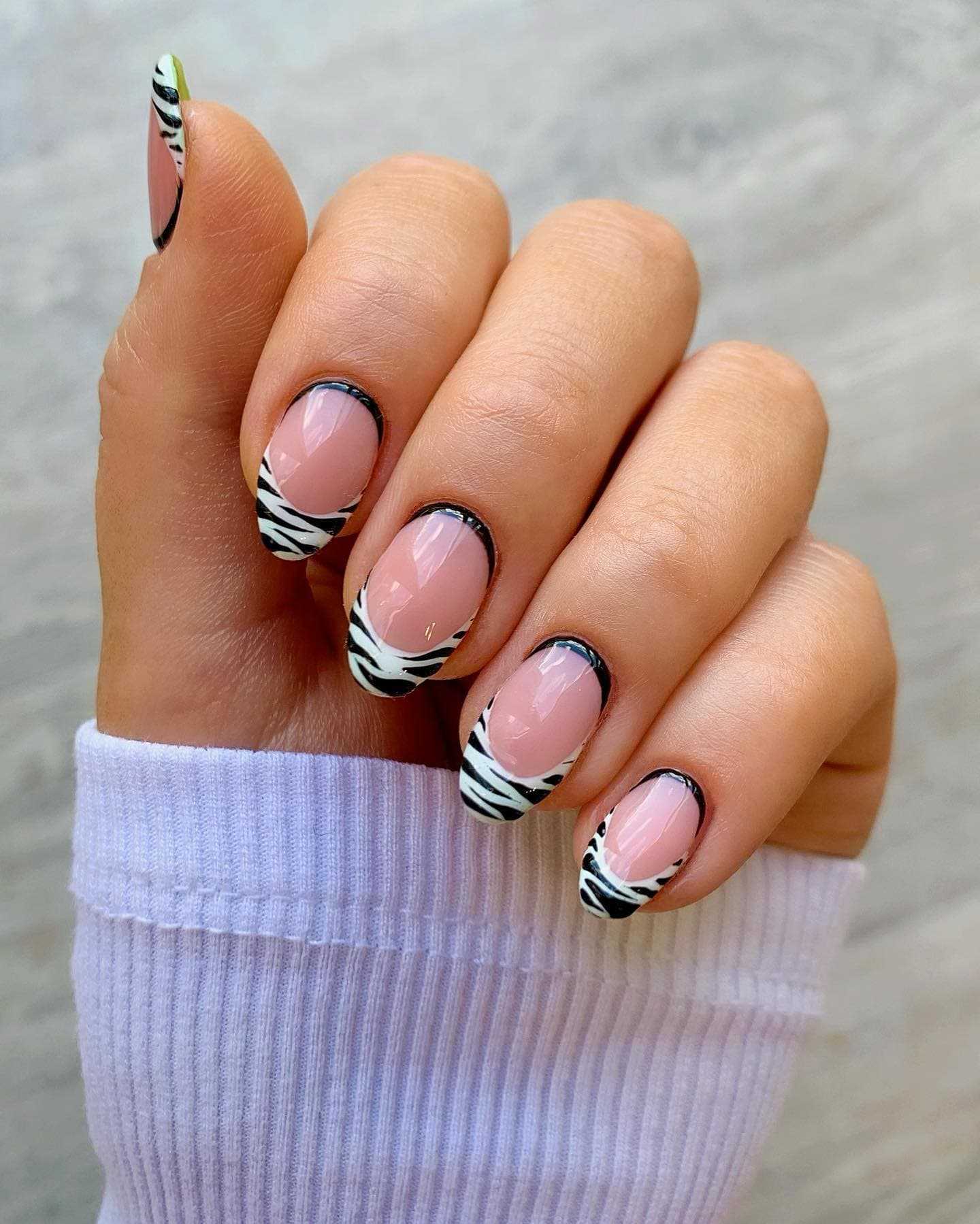 По-прежнему актуальны тигриные и леопардовые принты. Особенностью черного маникюра является их нанесение вручную на желтый, коричневый, оранжевый или белый фон.