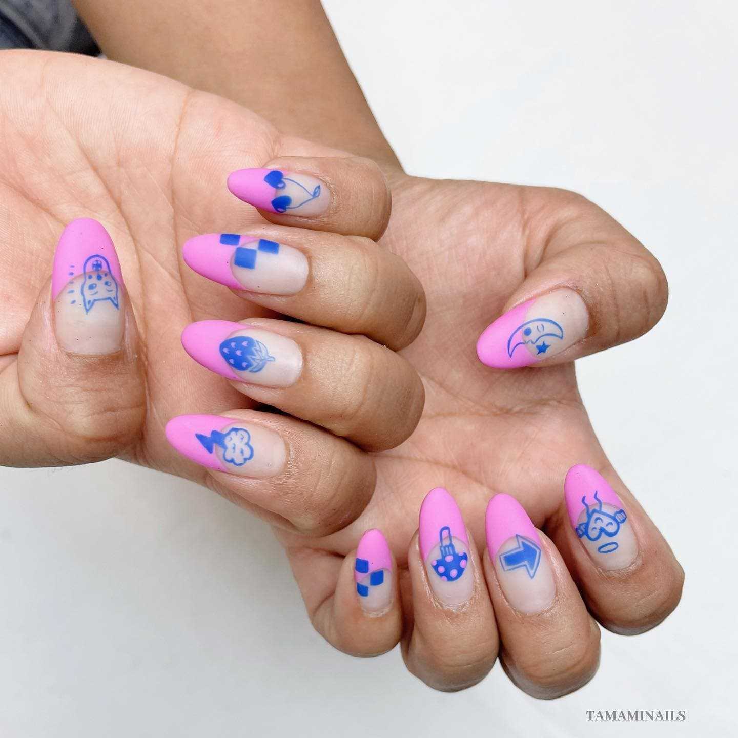 На пике популярности находится удлиненный миндаль и заостренная форма ногтей, предполагающая максимальную длину