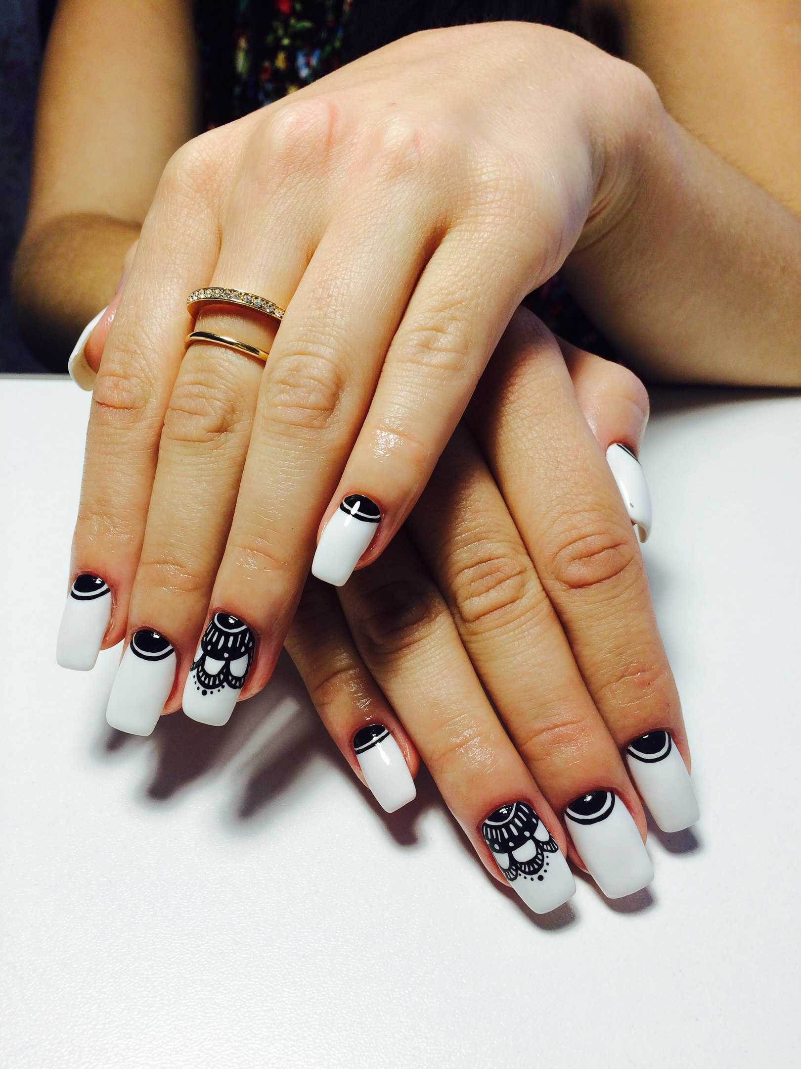 Главным источником вдохновения мастеров маникюра является природа и сменяющие друг друга времена года. По этой причине среди уникальных новинок можно найти цветочные принты с как будто живыми, дышащими на ногтях цветами. Наши фото – новинки в сфере такого свежего весеннего маникюра. Все так же популярным в 2021-2022 годах станет геометрический дизайн ногтей. Точки, линии, очертания фигур добавят капельку современности в ваш модный маникюр. «Если не знаете, что надеть, выбирайте маленькое черное платье»: этот тренд в одежде все еще занимает высокую позицию в мире моды. В нашем случае следует сказать: «Выбирайте черный цвет для вашего маникюра!» Этот цвет станет идеальным дополнением к деловому костюму, повседневной одежде или вечернему платью. Если вам не нравится излишняя мрачность такого выбора, то попробуйте сделать черные акценты. На бежевом фоне воплотите черные кружева или геометрические узоры