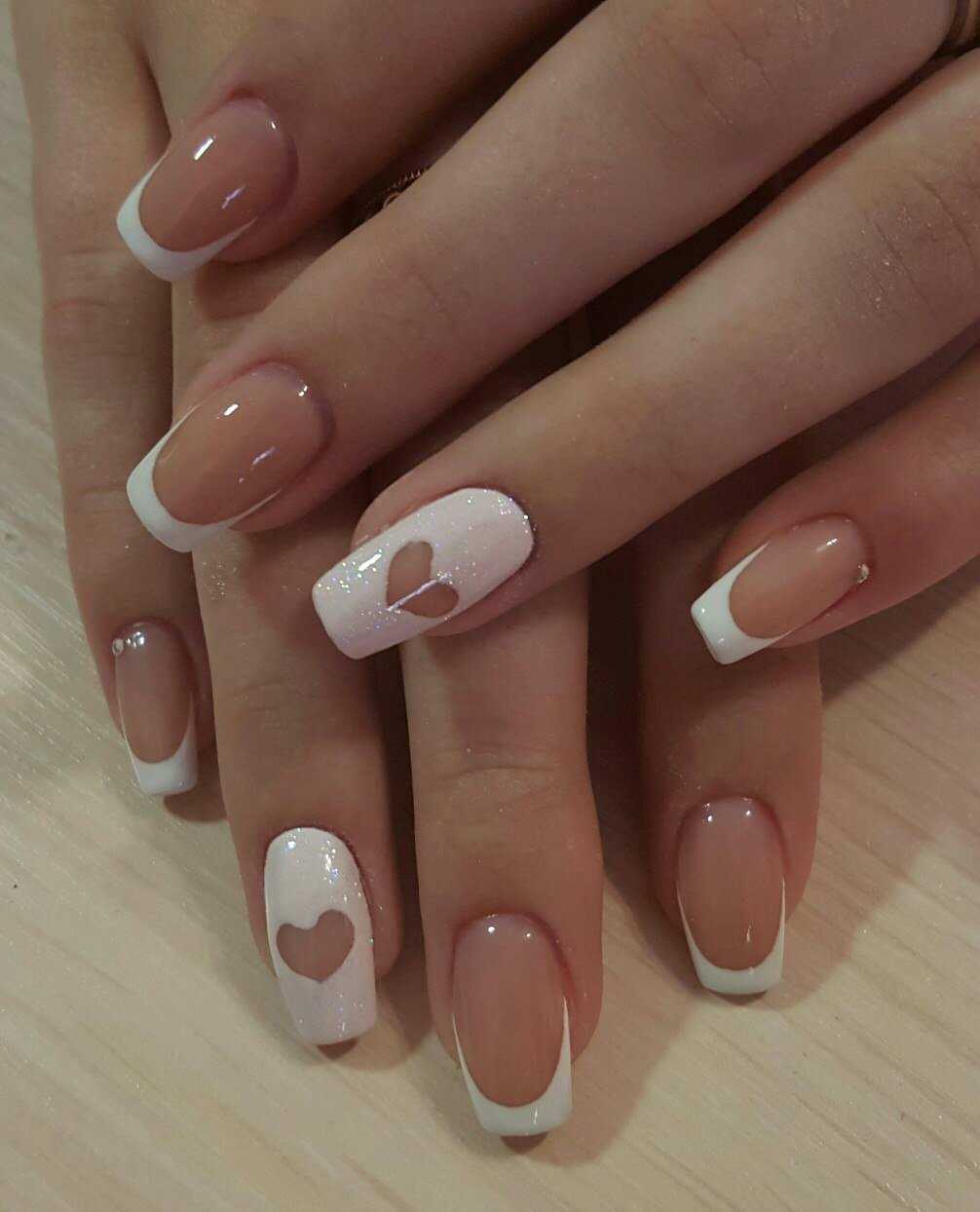 Цветовая гамма для такого вида дизайна разнообразна. Это простой классический маникюр с белой улыбкой на конце ногтя, либо лунный, с выделением лунки. Но улыбка и лунка могут быть необычного цвета. Лунки также могут быть необычной формы, в виде сердечка, полумесяца, треугольника, квадрата.