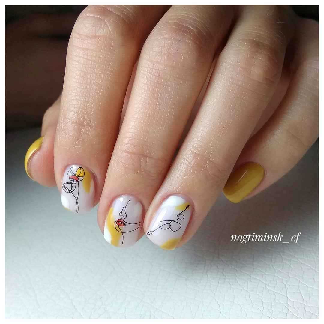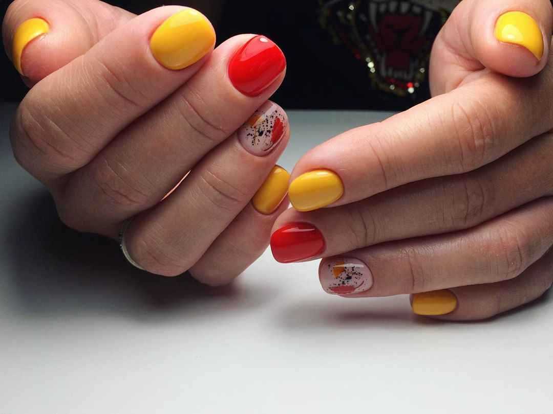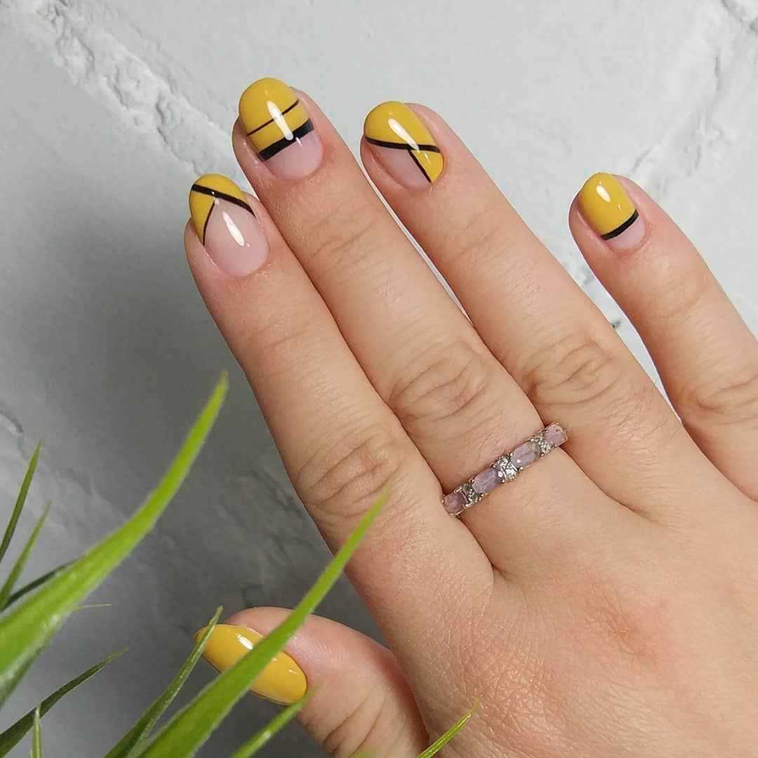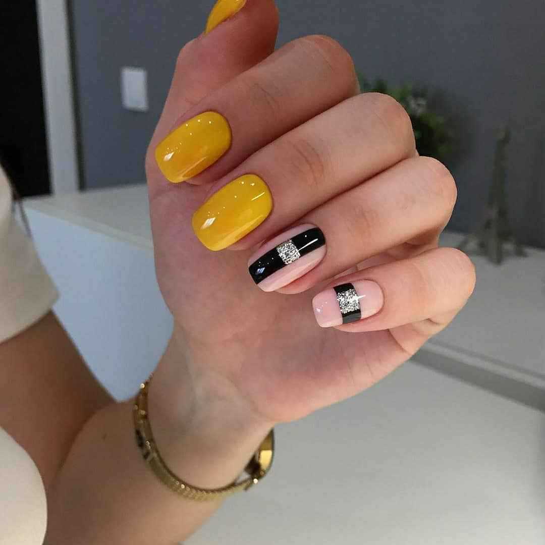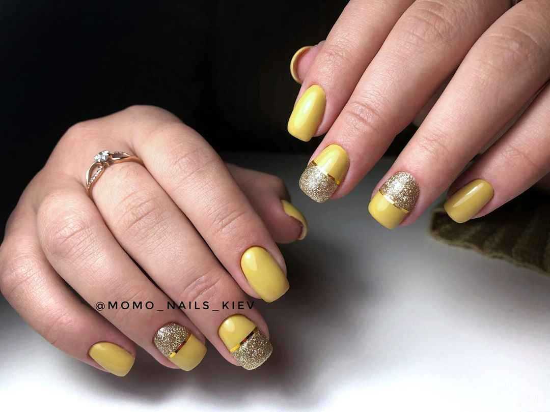Короткие ногти лучше не покрывать желтым полностью, а разбавлять этим цветом другие оттенки. В вашем распоряжении – масса вариантов, каким может быть желтый лак: