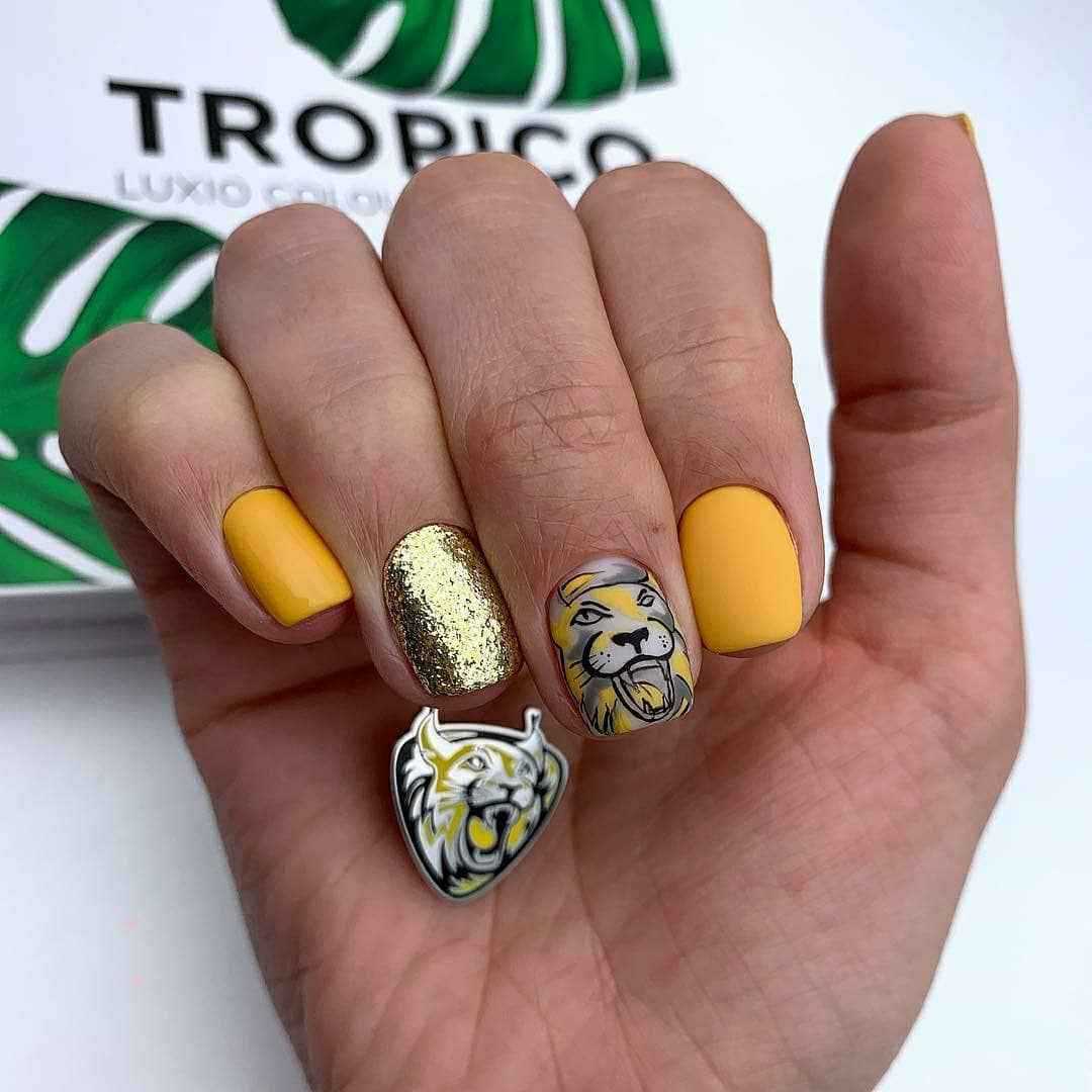 В юности позволительно красить ногти в канареечный или ярко-лимонный оттенок, добавляя к нему еще какой-нибудь привлекающий внимание лак или играя на контрасте, например, желтого и черного