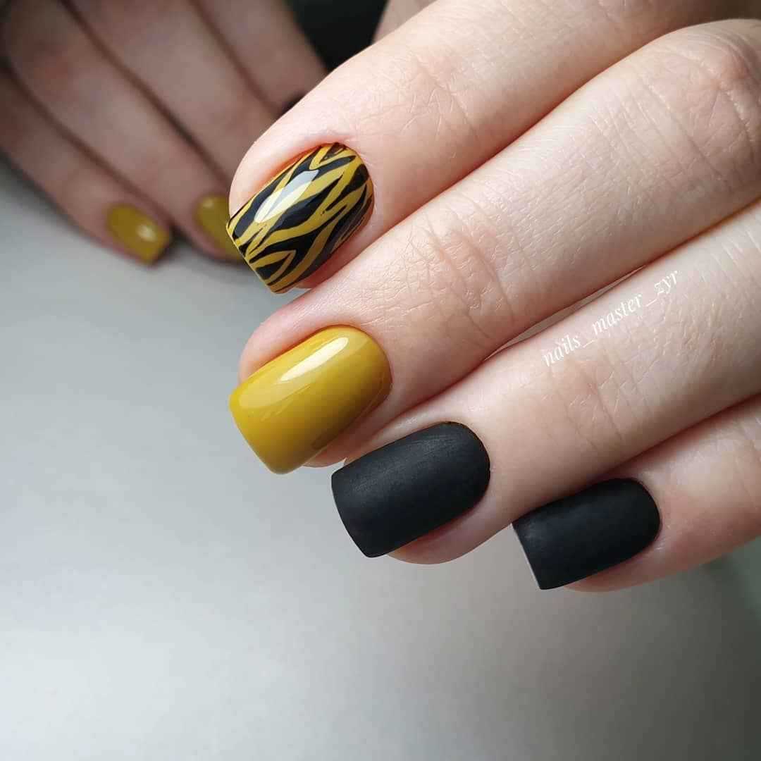 Черный лак универсален и чудесно сочетается практически с любыми оттенками покрытий. Подойдет он и для горчичного маникюра. Тут вы можете смело экспериментировать и создавать с помощью этих двух цветов стильный маникюр по фэн-шуй или же горчичный нейл-арт с черными узорами. В любом из этих случаев вы можете достигнуть просто потрясающего дизайна.