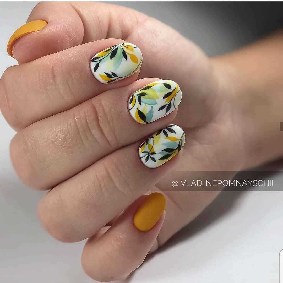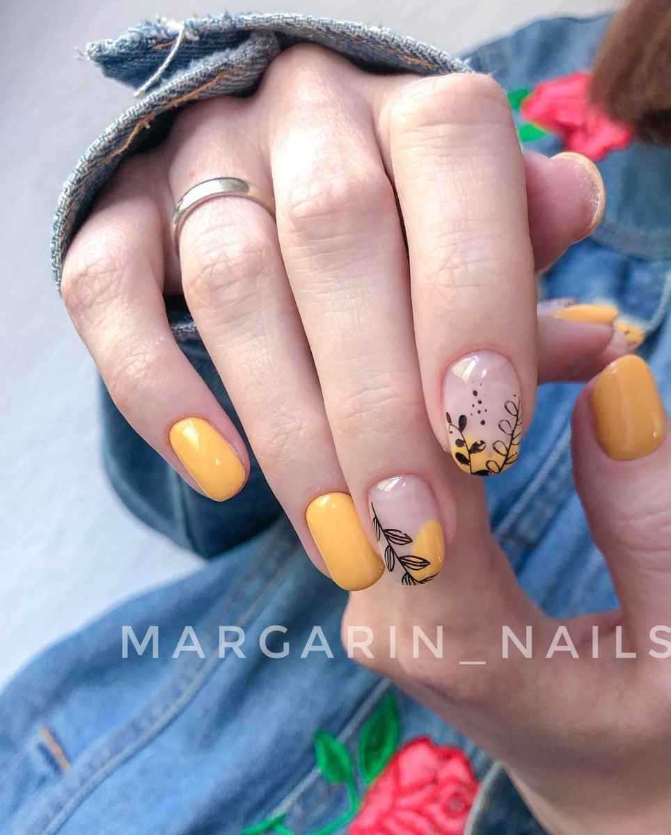 Горчичный маникюр 2021-2022 с дизайном