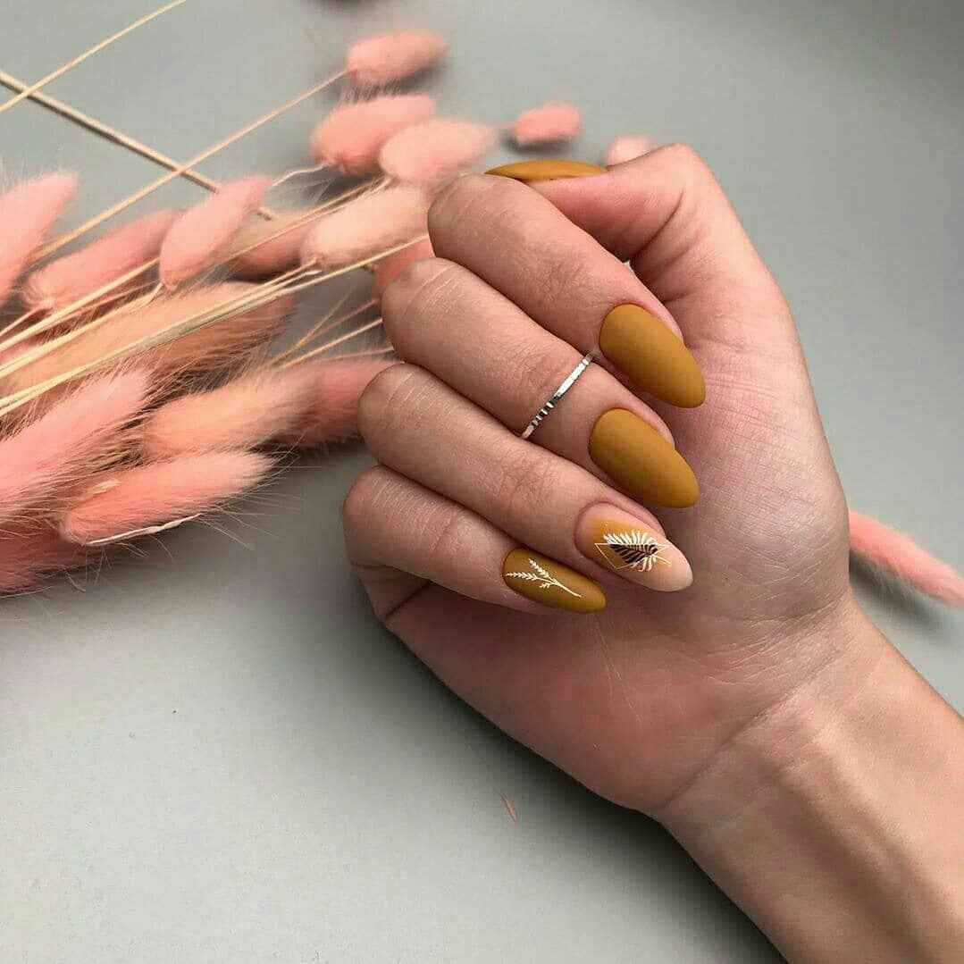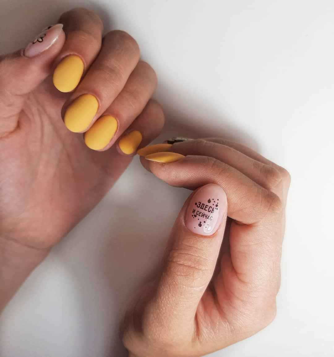 Горчичный матовый маникюр 2021-2022