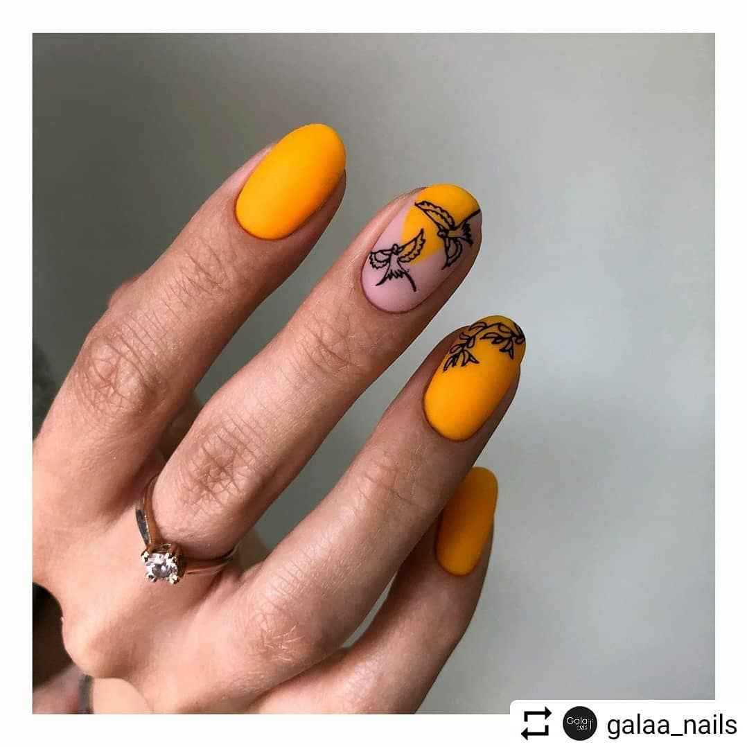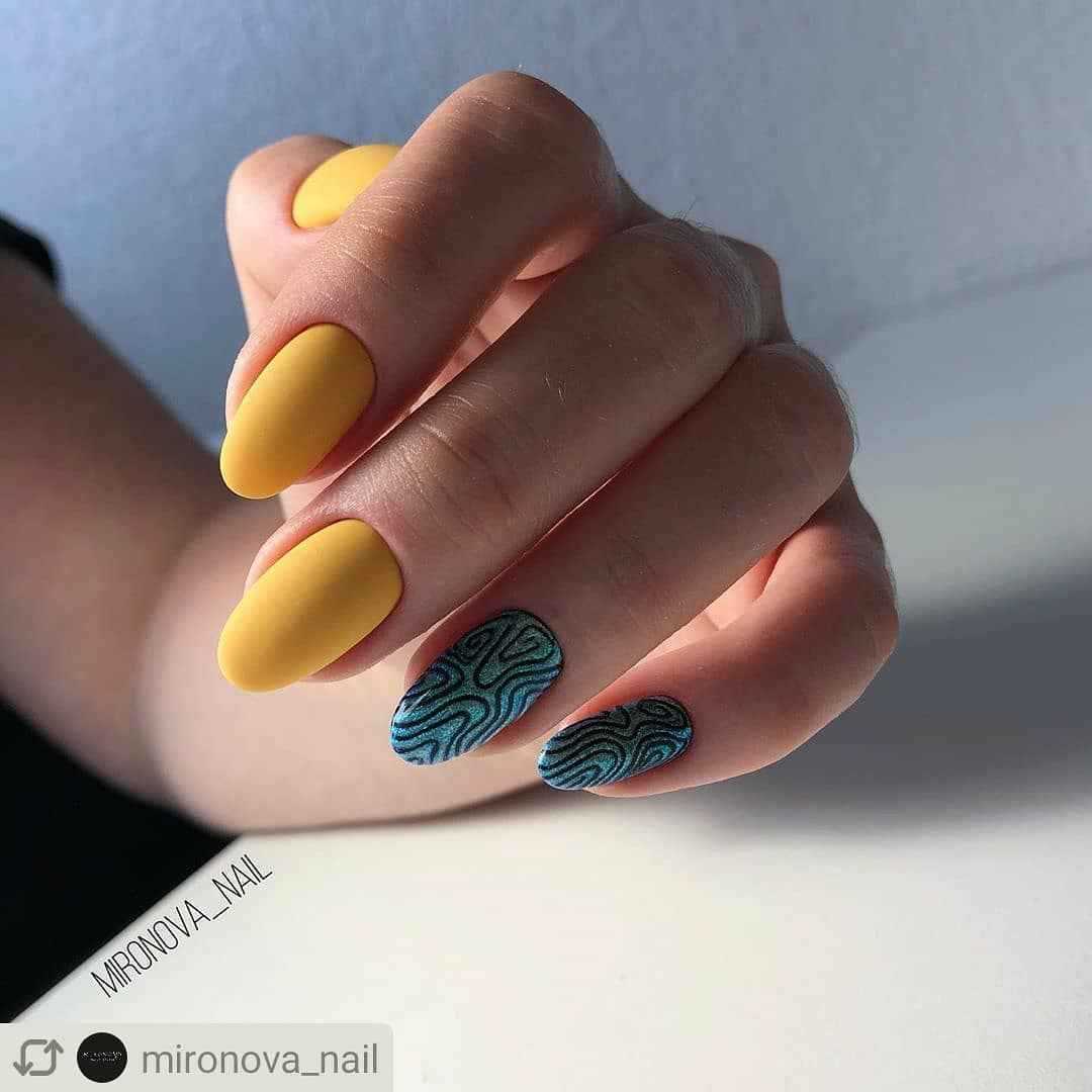 Еще один вариант горчичного маникюра 2021-2022, который поможет вам выделиться из толпы, это матовый. Как вы сами можете заметить, матовый топ чудесным образом преображает ноготок и делает его более красивым, элегантным и стильным.