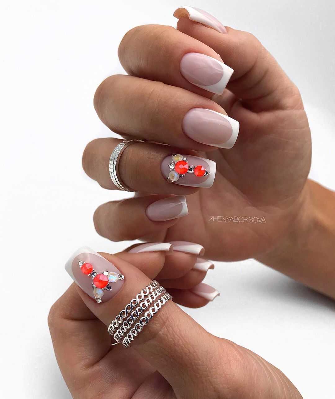 Декор и стразы в маникюре Френч 2021