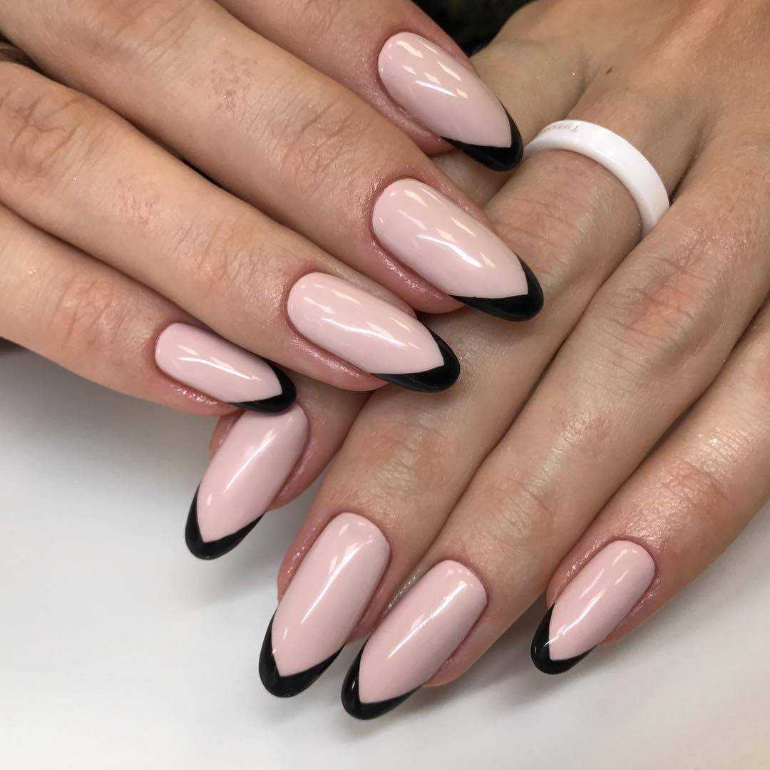 Самые популярные оттенки для темного френча: черный (особенно в комбинации с матовой основой), серый, мокрый асфальт, темный изумруд, винный, марсала, дикая слива, бордо.