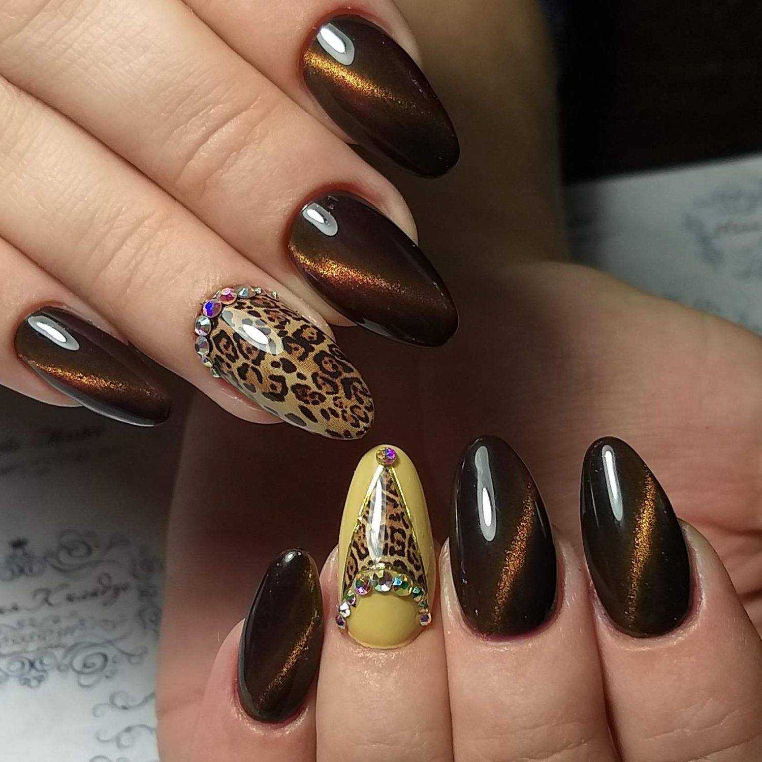 Восхитительный маникюр в коричневом цвете с животным дизайном