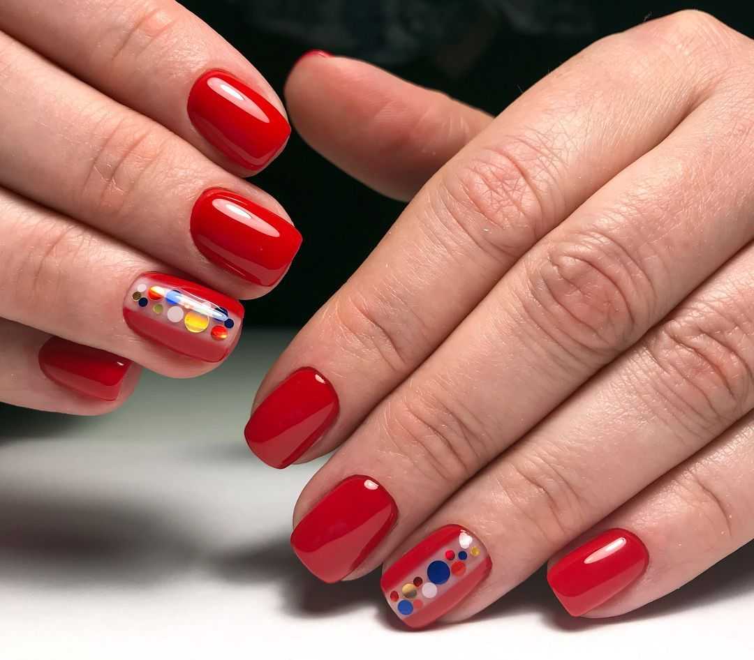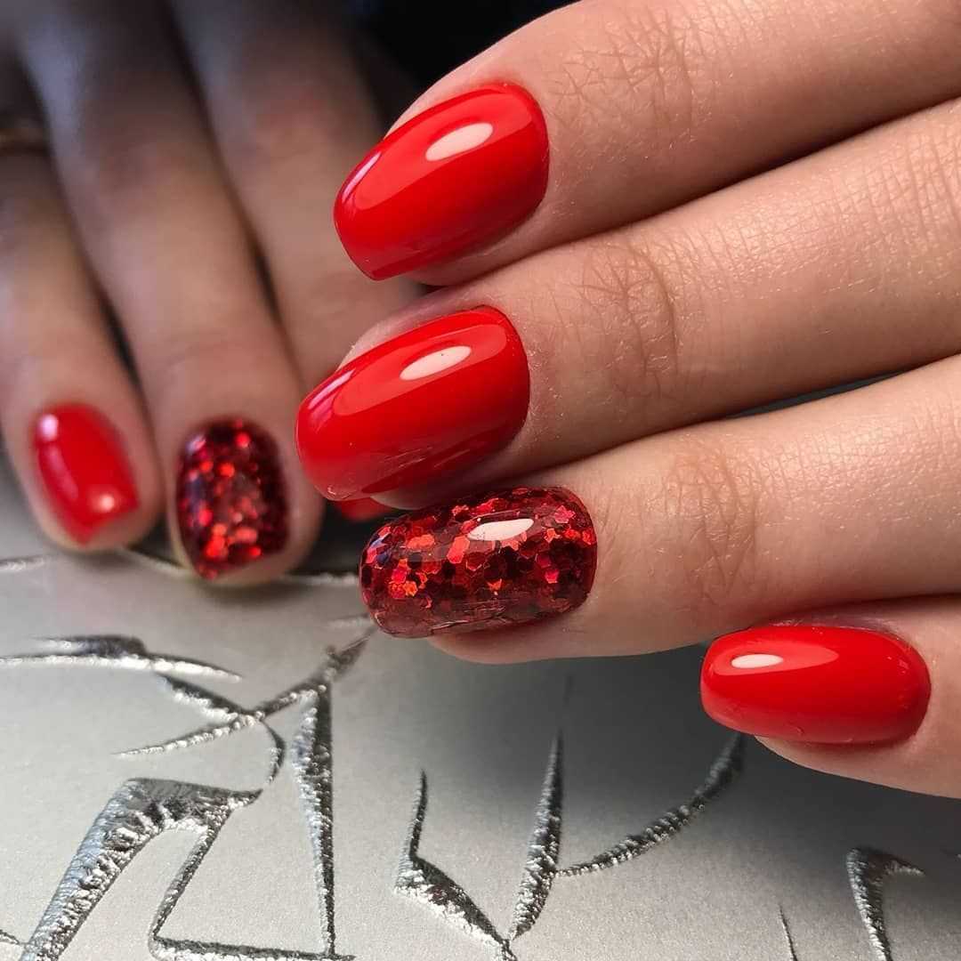 #2 Красный маникюр с блестками на короткие ногти