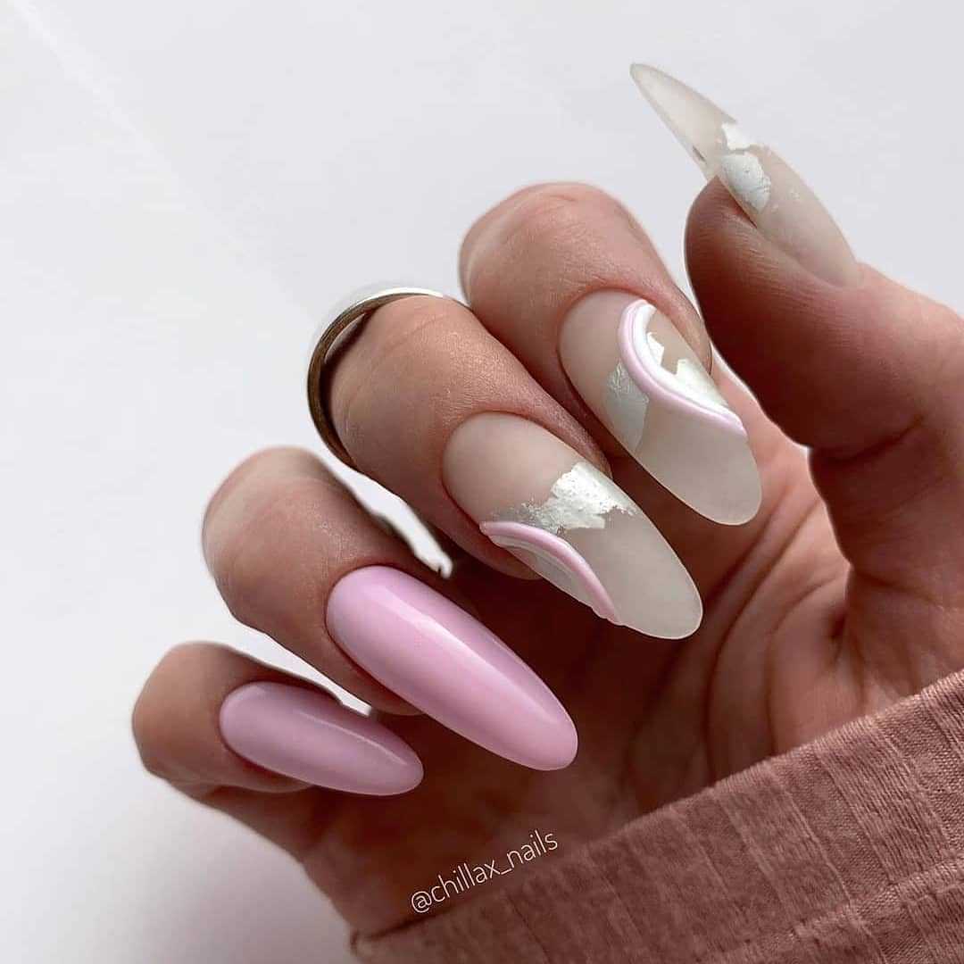 Нюдовый маникюр 2023 — 2024: идеи на миндалевидных ногтях
