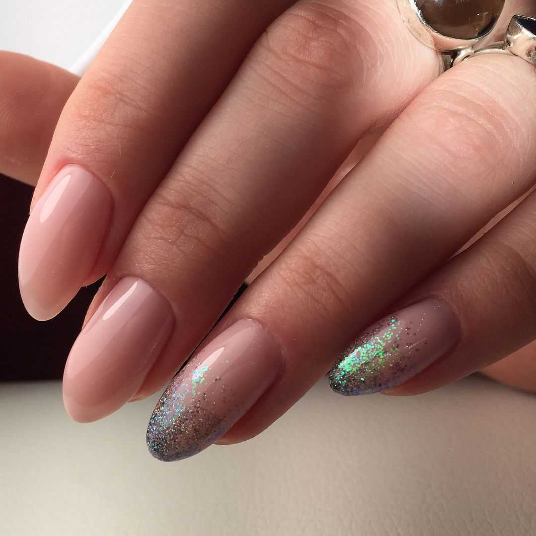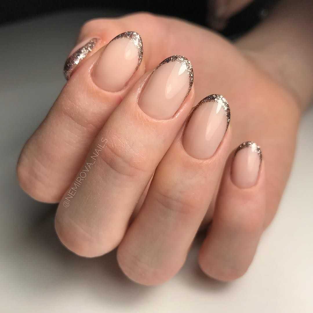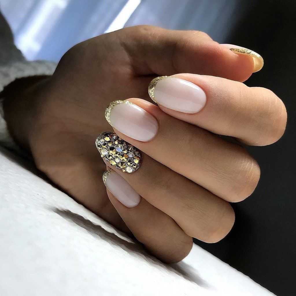 Бежевый маникюр с блестками заслуживает особенного внимания. Кроме того, что этот нейл-арт смотрится очень нежно и стильно, он достаточно универсален и может делаться не только для праздника, но и для повседневной носки.