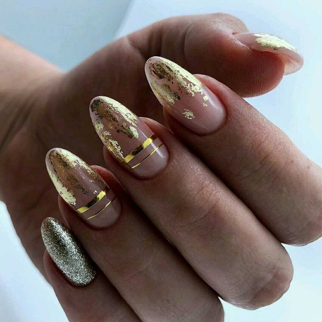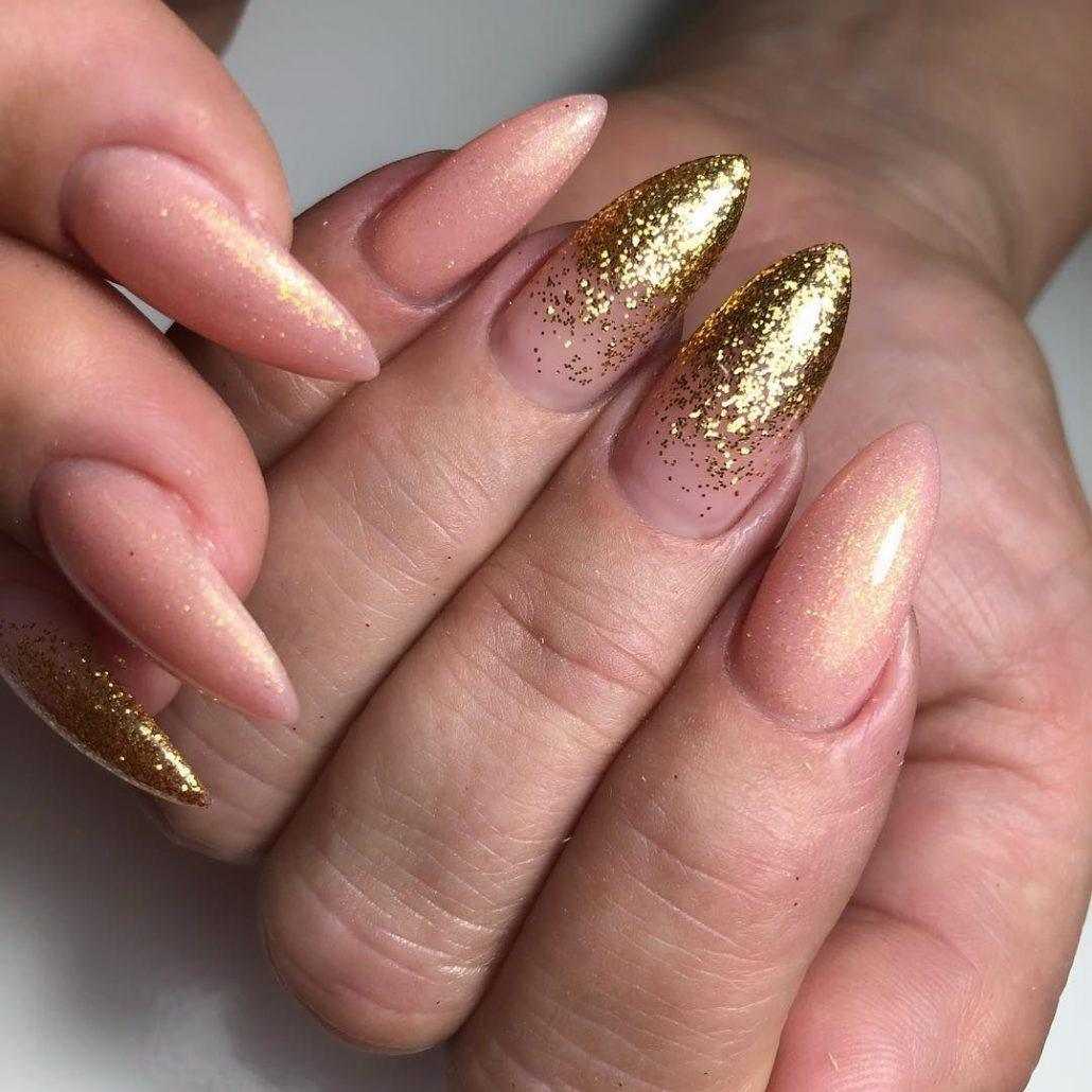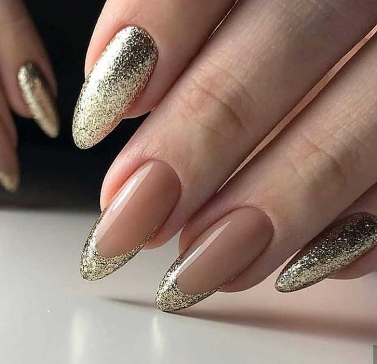 Бежевый маникюр с блестками заслуживает особенного внимания. Кроме того, что этот нейл-арт смотрится очень нежно и стильно, он достаточно универсален и может делаться не только для праздника, но и для повседневной носки.