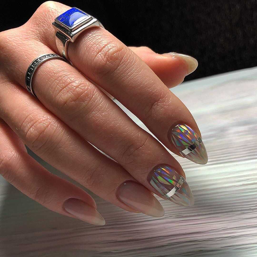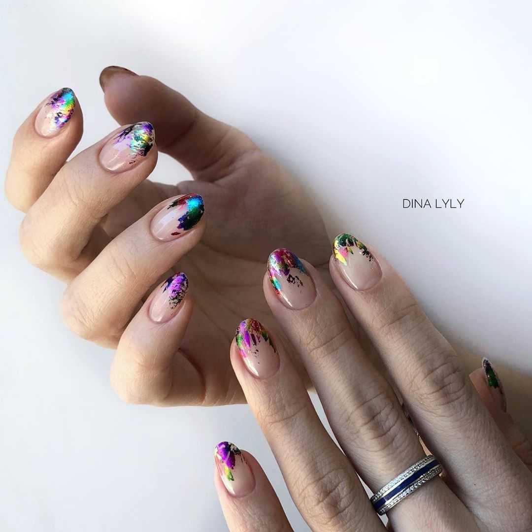 Совсем не обязательно делать блестящие ногти на каждом пальчике. Фантазируйте и сочетайте сразу несколько техник
