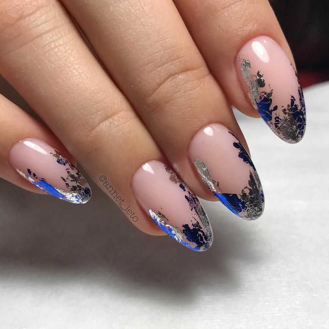 Синий маникюр с блестками – еще один очень популярный нейл-арт. Его отличительными чертами является универсальность и вариативность, которые достигаются за счет широкой цветовой гаммы и множества оттенков. Например, голубой маникюр с блестками будет выглядеть более легким, воздушным и отлично подойдет для весенне-летнего периода. А вот лиловый, сиреневый или фиолетовый маникюр с блестками создают уже совершенно другое настроение и подходят больше для осеннего дизайна ногтей.