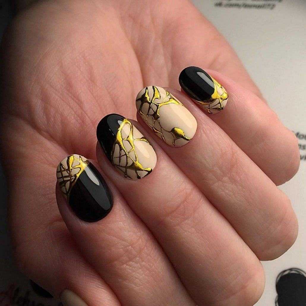 Первый нейл-арт, который заслуживает вашего внимания, – это черный маникюр с блестками. Темные лаки в качестве базового цвета являются отличной основой для серебряного или золотистого глиттера на ногтях. Именно серебристая цветовая гамма пользуется наибольшей популярностью, если говорить о глиттерном декоре. В свою очередь, маникюр с золотыми блестками смотрится на ногтях очень торжественно и роскошно, в чем вы можете убедиться, взглянув на фото.