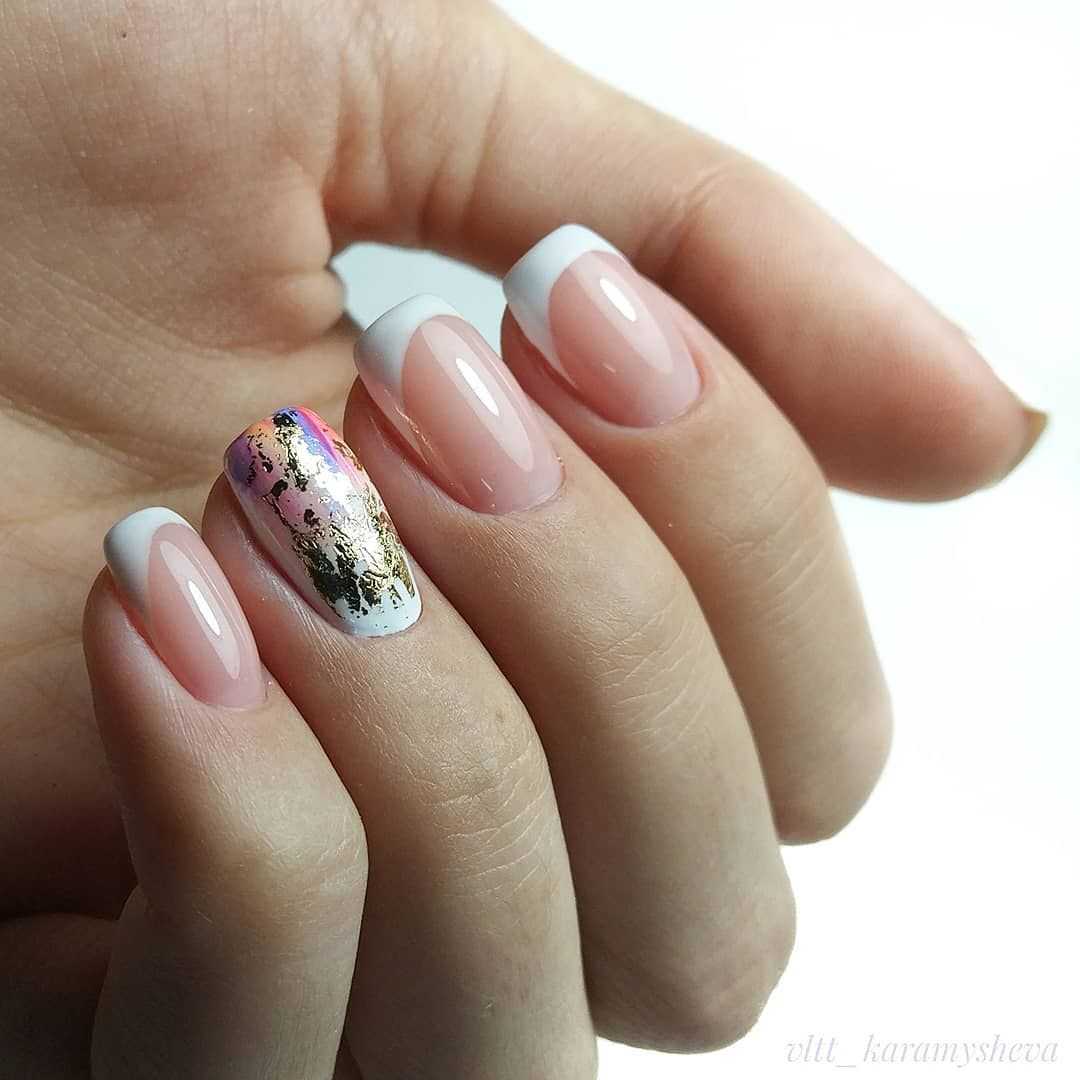 Французский маникюр настолько простая и универсальная техника, что способна выдержать соседство с самым необычным и нехарактерным для нее декором