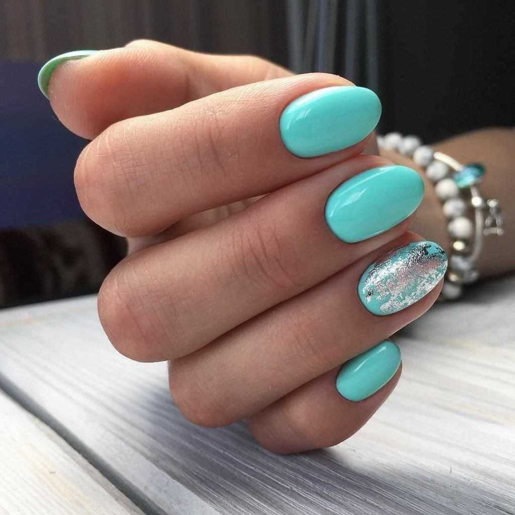 3 Весенний дизайн на коротких матово-голубых ногтях.